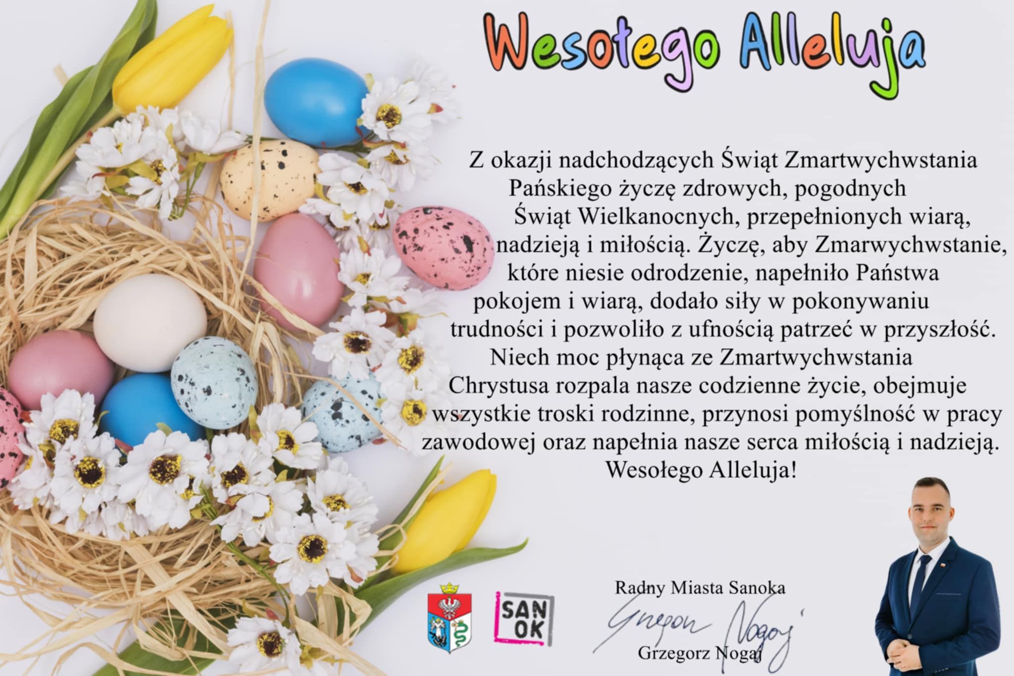 SANOK. Z okazji Świąt Wielkanocnych Radny Miasta Sanoka Grzegorz Nogaj składa wszystkim Mieszkańcom serdeczne życzenia zdrowia, radości oraz rodzinnego ciepła.
