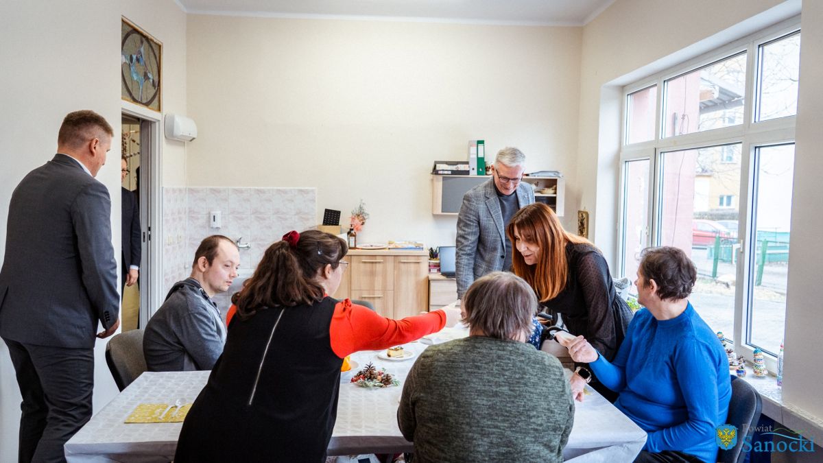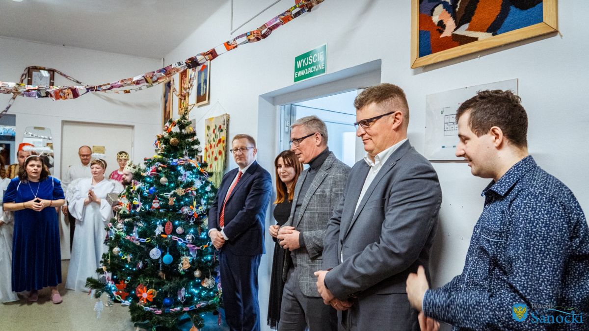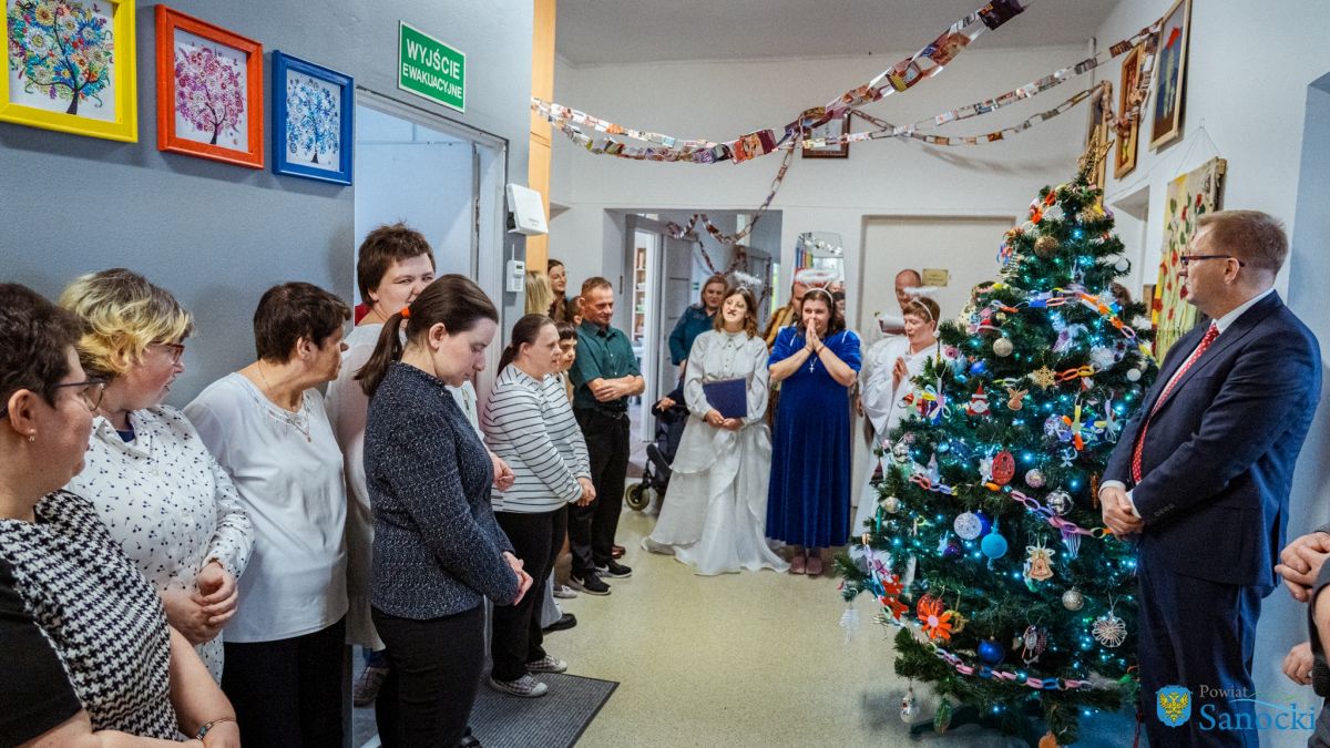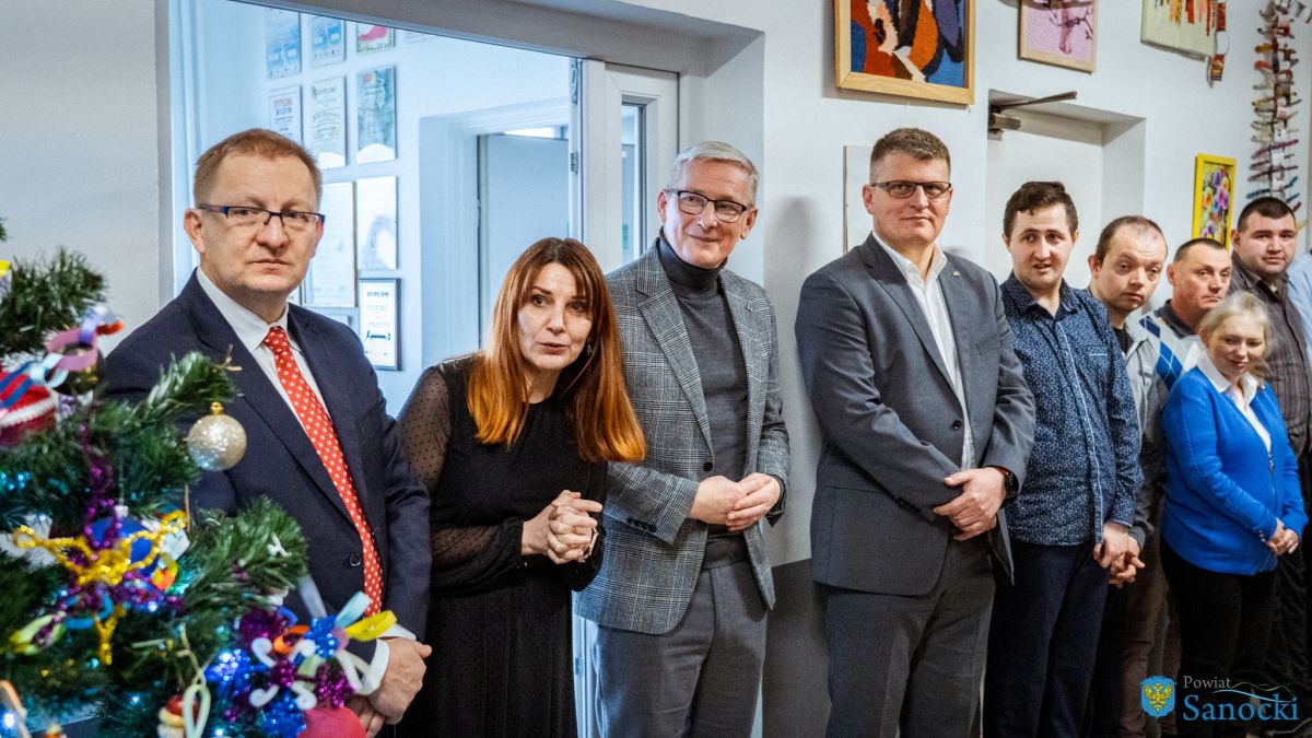 W wydarzeniu uczestniczyli także zaproszeni goście: Starosta Sanocki Robert Pieszczoch, Wicestarosta Damian Biskup oraz Dyrektor Powiatowego Centrum Pomocy Rodzinie Grzegorz Kozak. Goście wspólnie z uczestnikami i kadrą Warsztatów podzielili się opłatkiem oraz przekazali świąteczne życzenia zdrowia, spokoju i nadziei na nadchodzący rok.