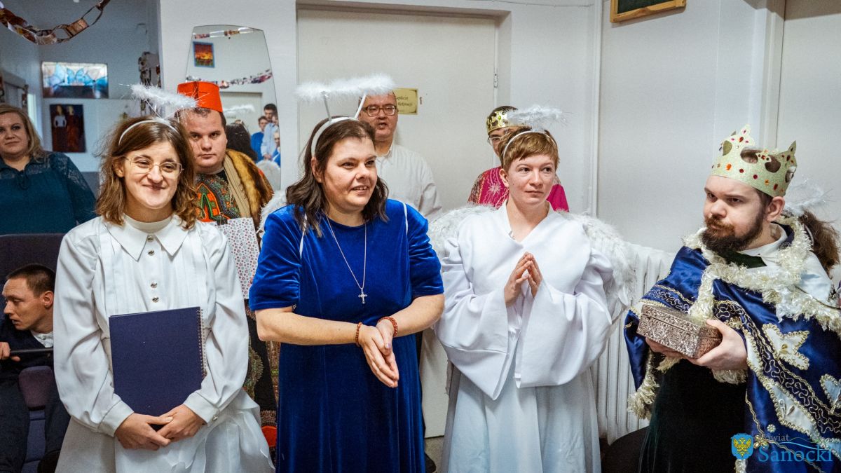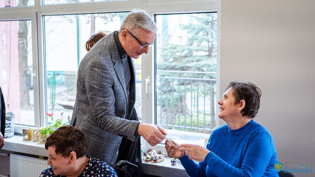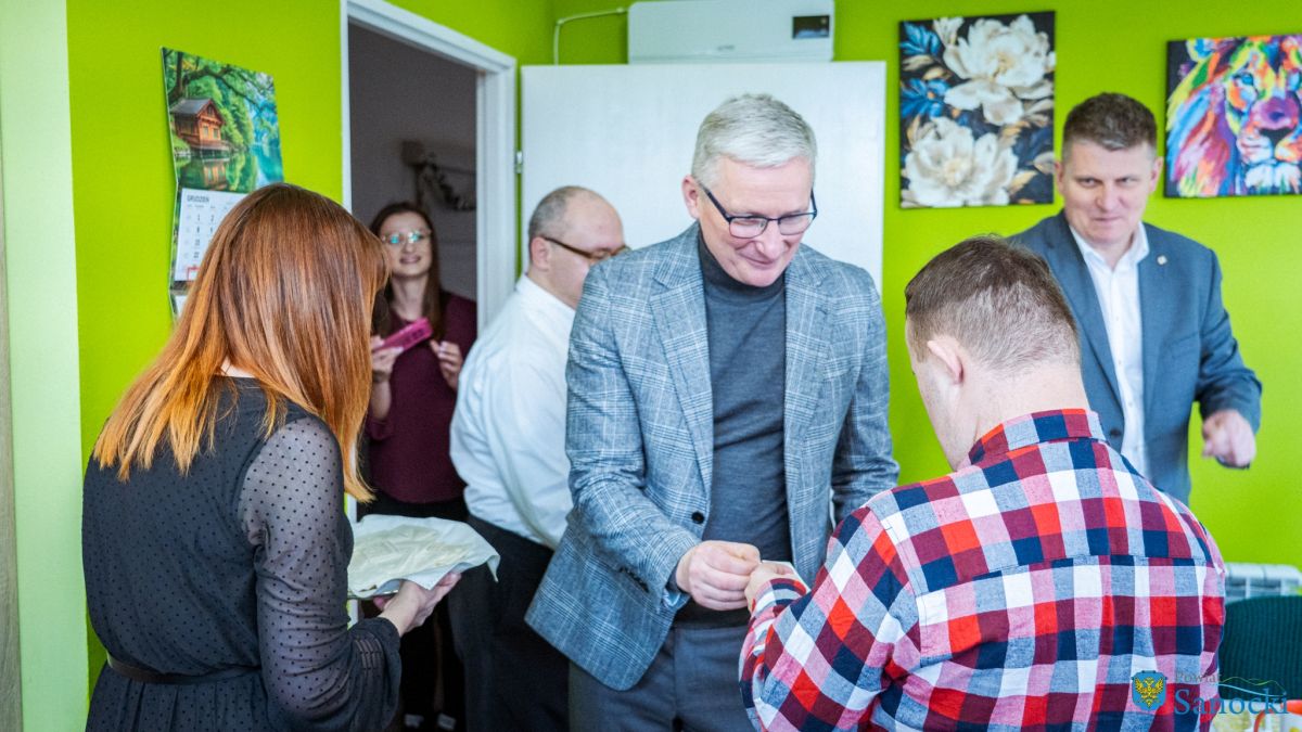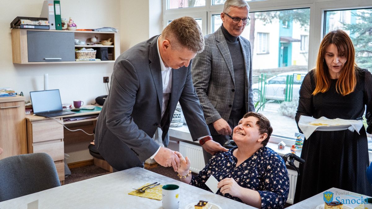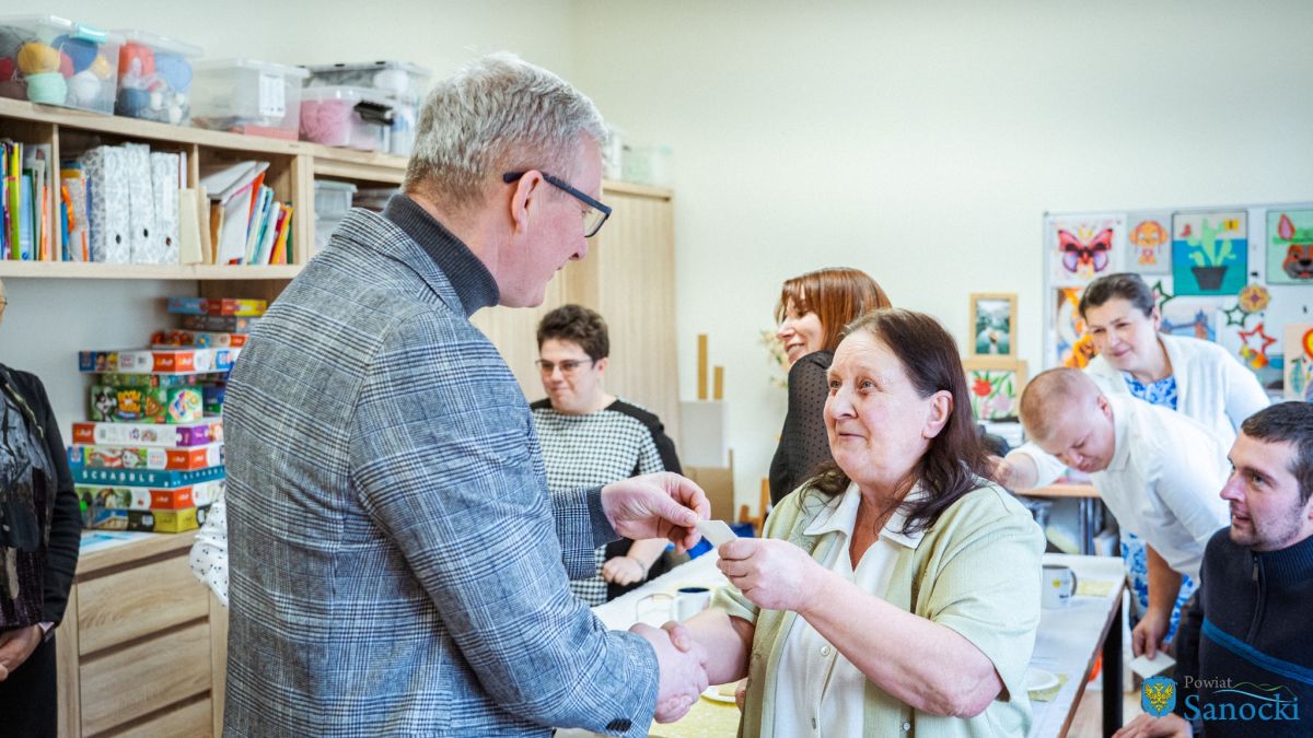 W wydarzeniu uczestniczyli także zaproszeni goście: Starosta Sanocki Robert Pieszczoch, Wicestarosta Damian Biskup oraz Dyrektor Powiatowego Centrum Pomocy Rodzinie Grzegorz Kozak. Goście wspólnie z uczestnikami i kadrą Warsztatów podzielili się opłatkiem oraz przekazali świąteczne życzenia zdrowia, spokoju i nadziei na nadchodzący rok.
