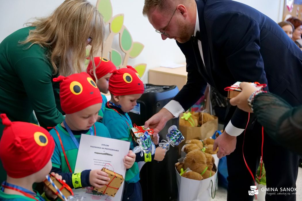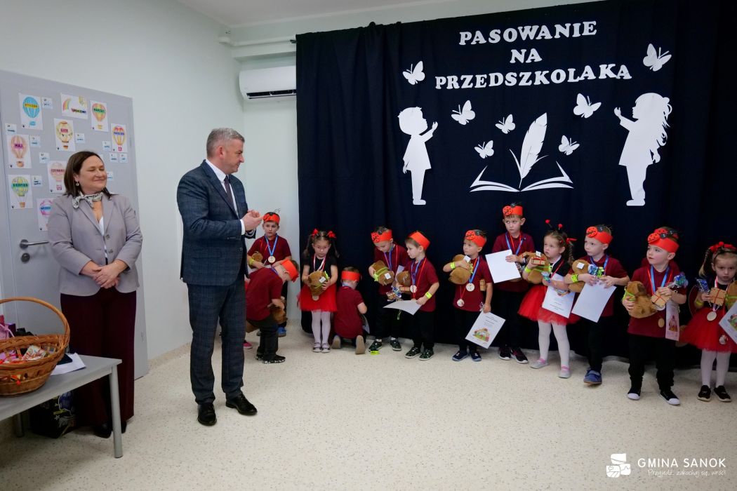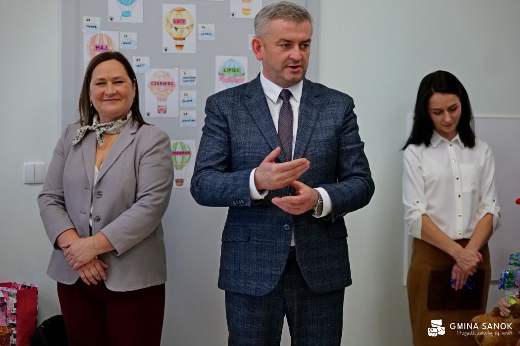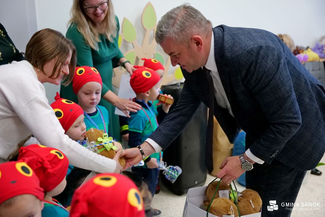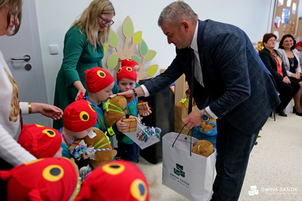 Nie zabrakło również życzeń i prezentów od wójta gminy Sanok, Pawła Wdowiaka, oraz zaproszonych gości. Uroczystość zakończył wspólny słodki poczęstunek, który był okazją do integracji dzieci i rodziców.