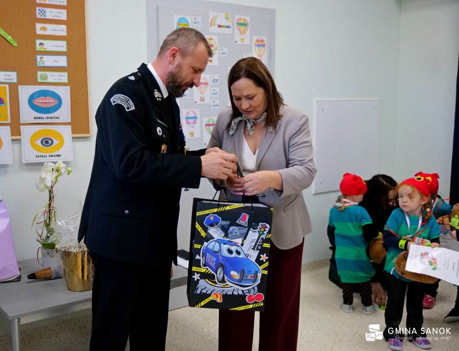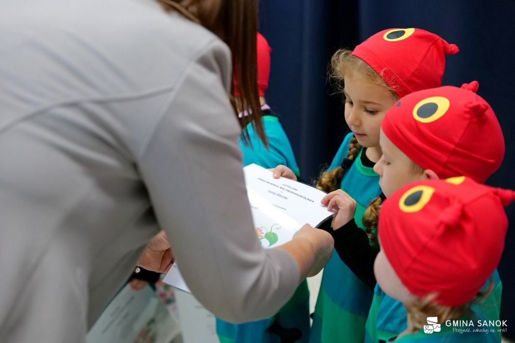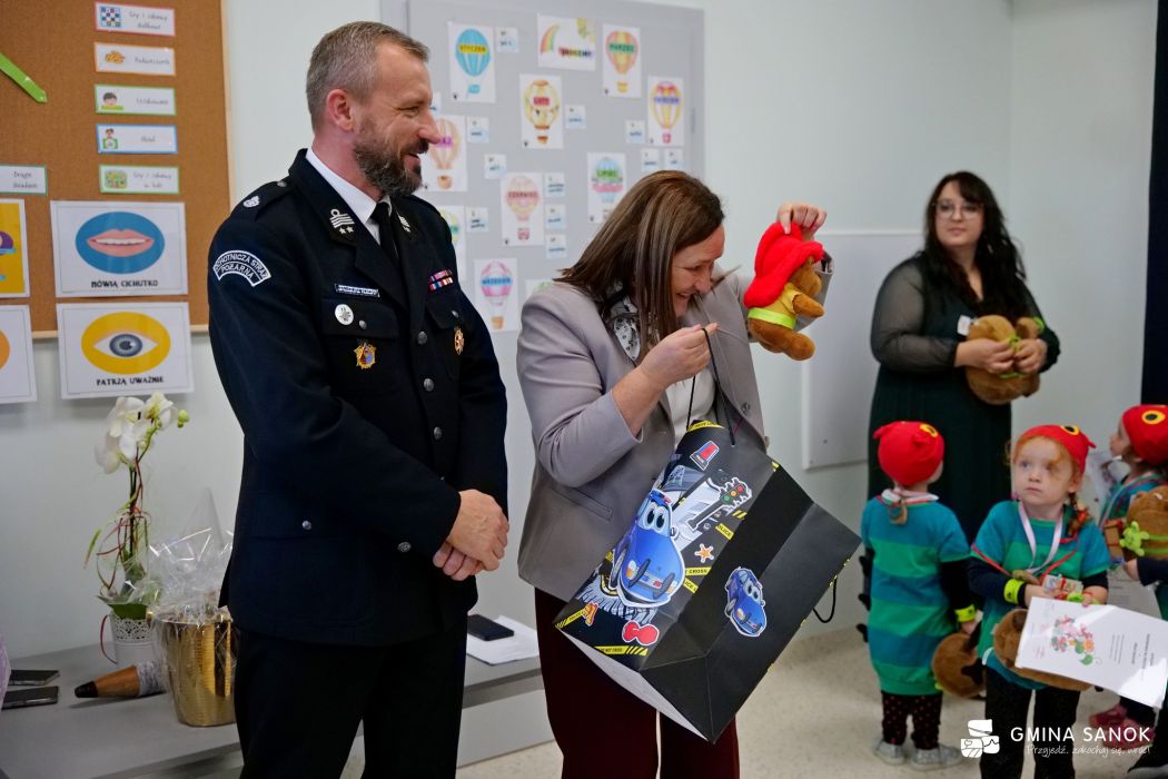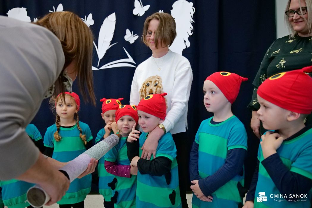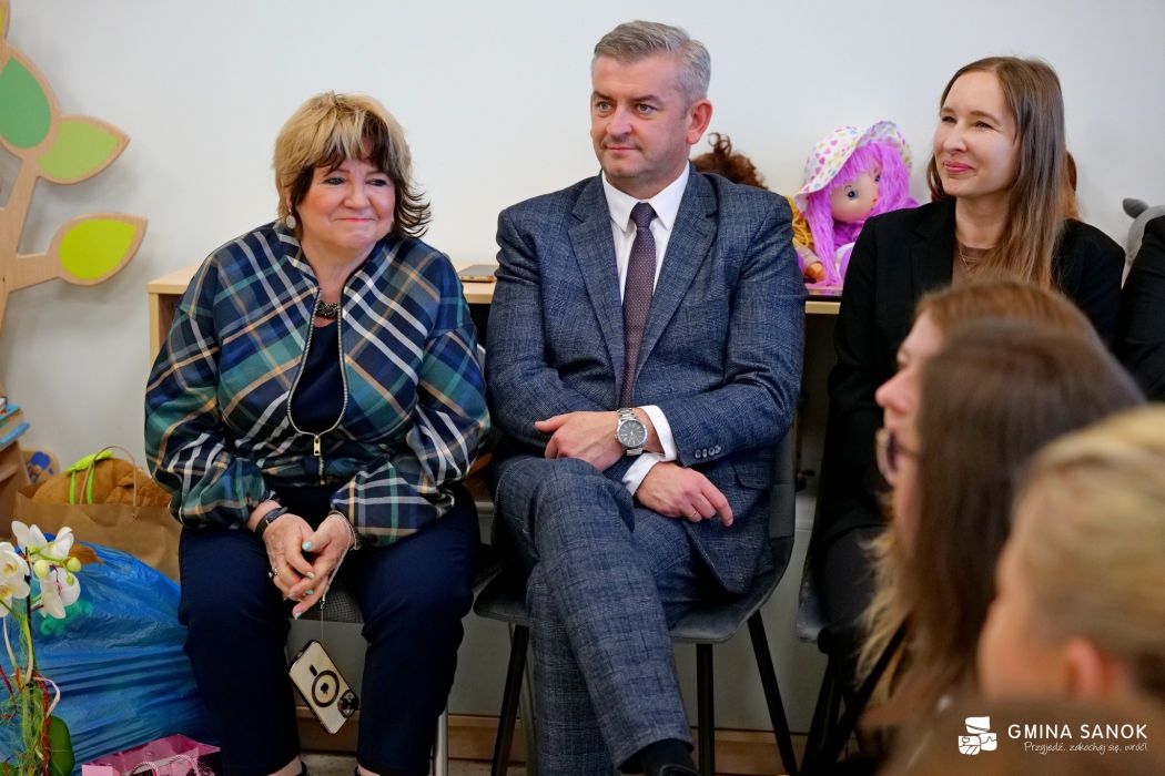 Nie zabrakło również życzeń i prezentów od wójta gminy Sanok, Pawła Wdowiaka, oraz zaproszonych gości. Uroczystość zakończył wspólny słodki poczęstunek, który był okazją do integracji dzieci i rodziców.