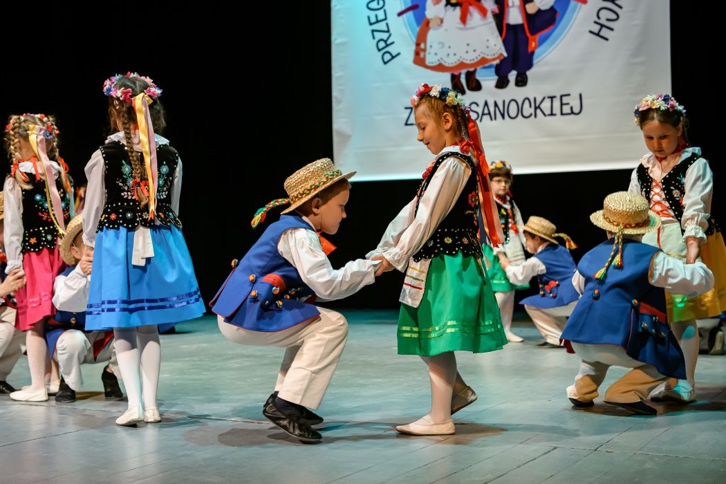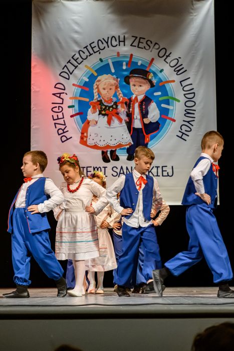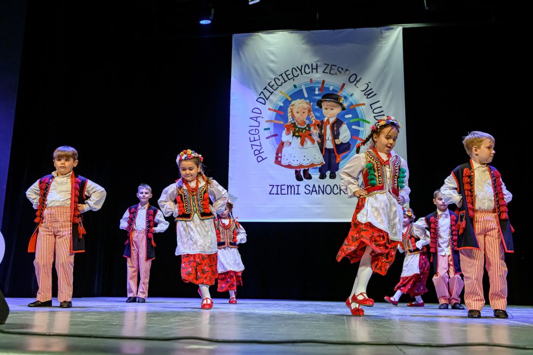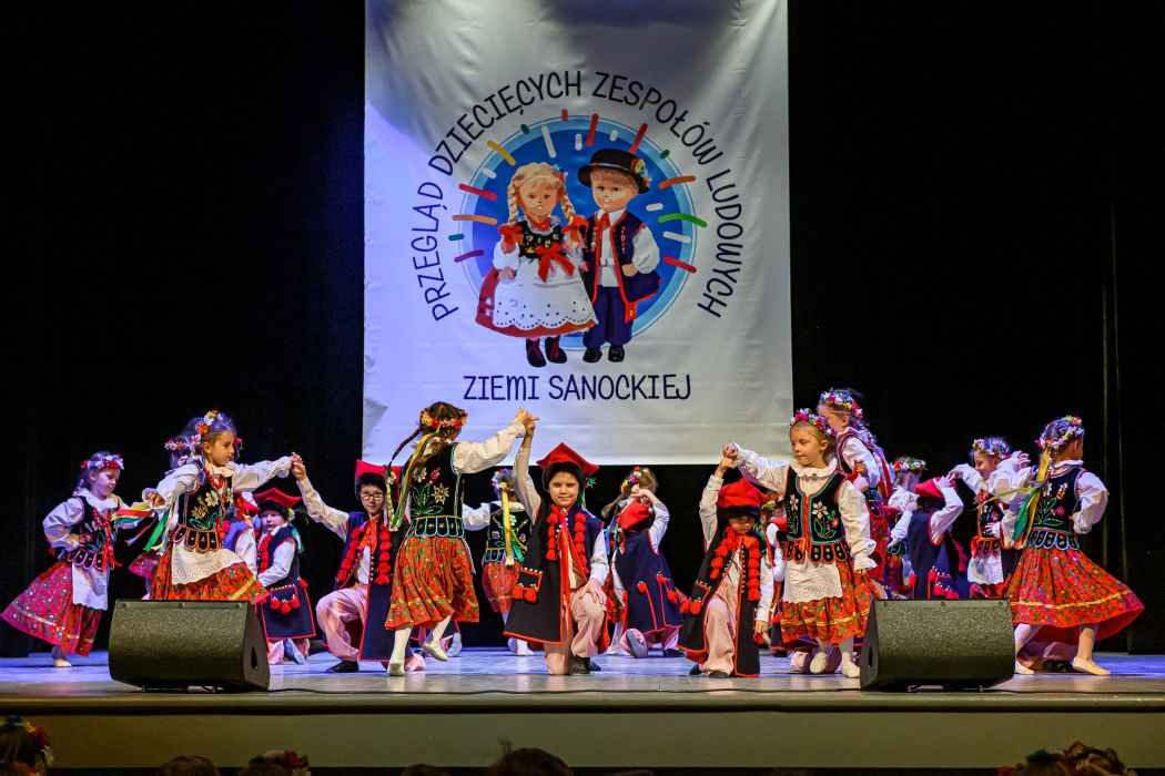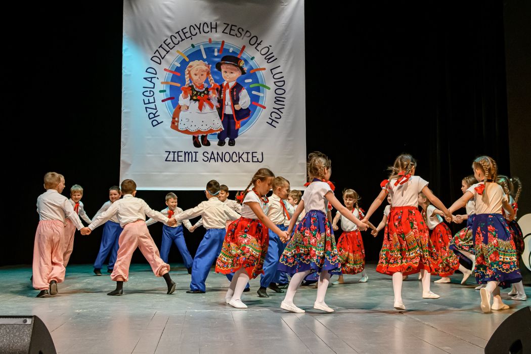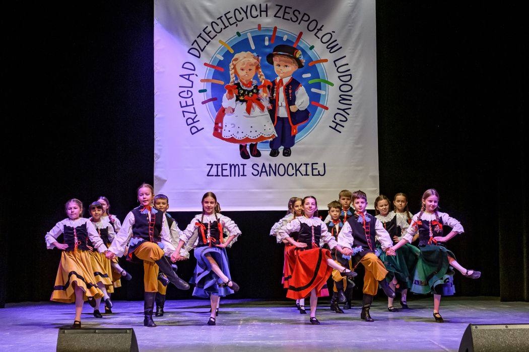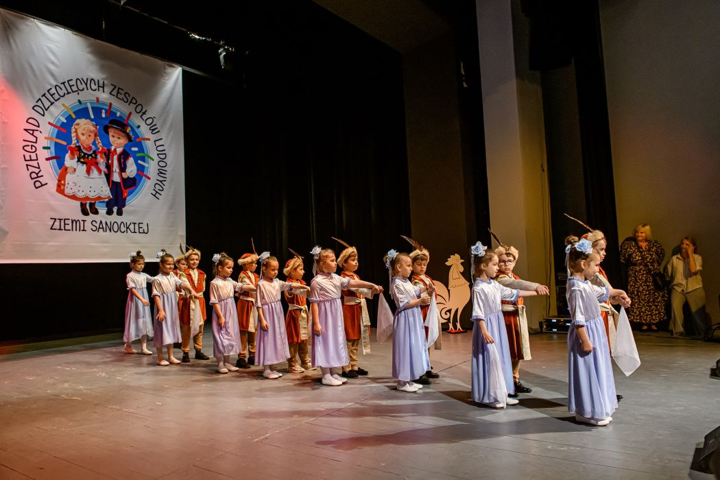 SANOK. W czwartek 22 maja br. w Sanockim Domu Kultury odbył się XII Przegląd Dziecięcych Zespołów Ludowych Ziemi Sanockiej, w którym udział wzięło 10 grup, czyli blisko 250 młodych tancerzy prezentując bogactwo kultury ludowej.