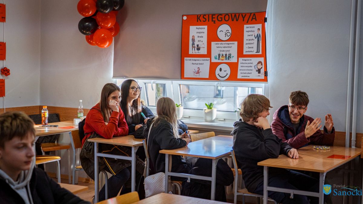 Każdy profil edukacyjny przygotował własną prezentację, dzięki czemu przyszli pierwszoklasiści mogli zobaczyć codzienne życie w „Ekonomiku” z przymrużeniem oka. Wśród gości był również Wicestarosta Sanocki Damian Biskup, który docenił zaangażowanie młodzieży i pomysłowość nauczycieli.