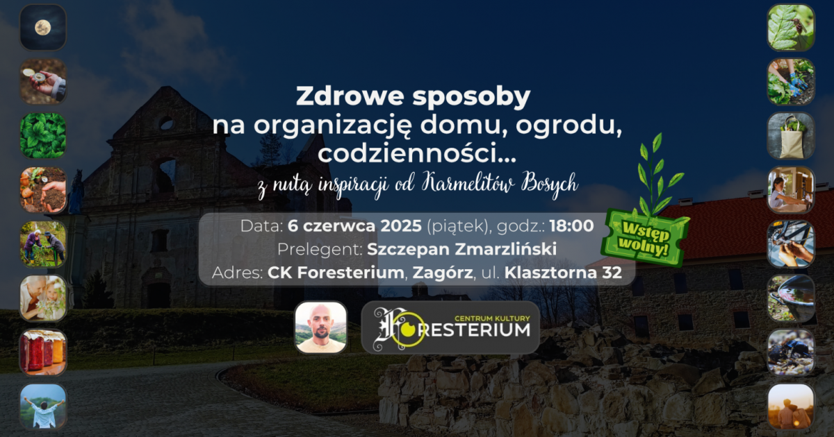 GMINA ZAGÓRZ. Jak deklarują sami gospodarze Centrum Kultury Foresterium w Zagórzu – warsztatów takich, jak te tytułowe jeszcze tam nie było! W dniu 6 czerwca (piątek) o godz. 18:00 poprowadzi je Szczepan Zmarzliński (ogrodnik, projektant, edukator w zakresie biointegralności). Prelegent prowadzący spotkanie, w przystępny sposób pokaże, jak praktycznie wdrażać wybrane proekologiczne idee w codziennym życiu — pogłębiając zrozumienie natury, zdrowia i ich wpływu na naszą codzienność.