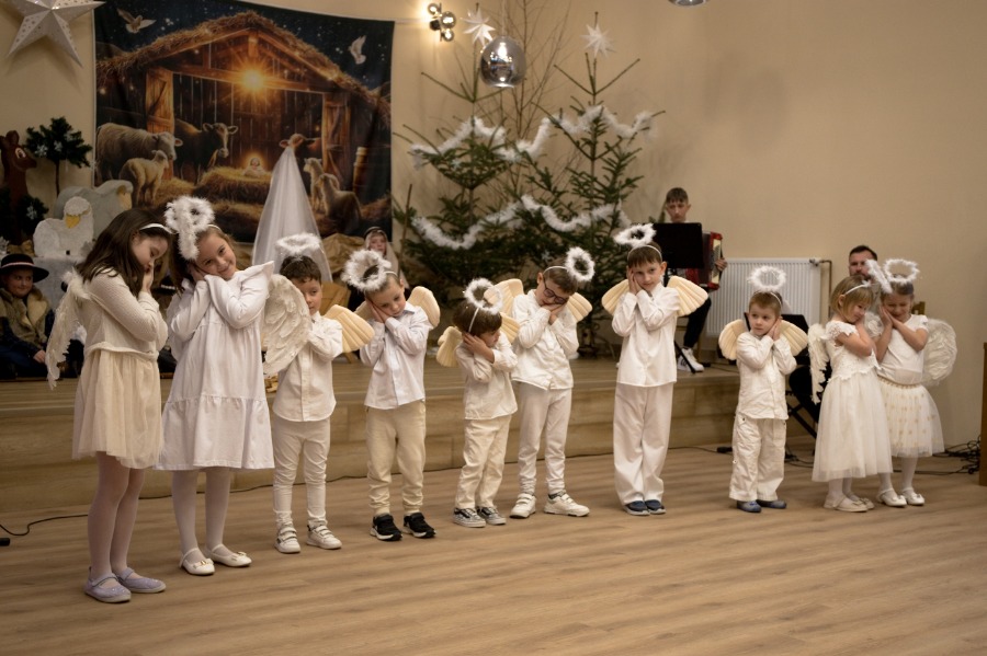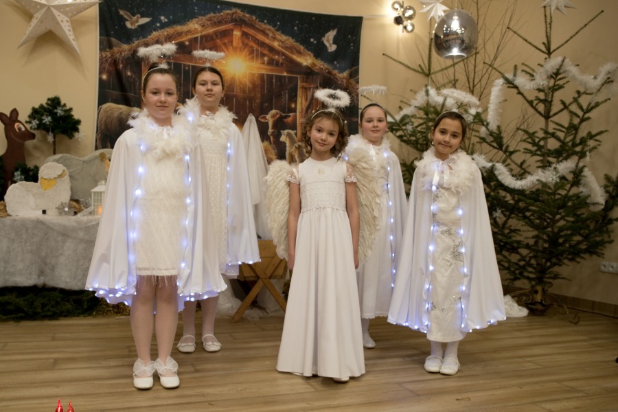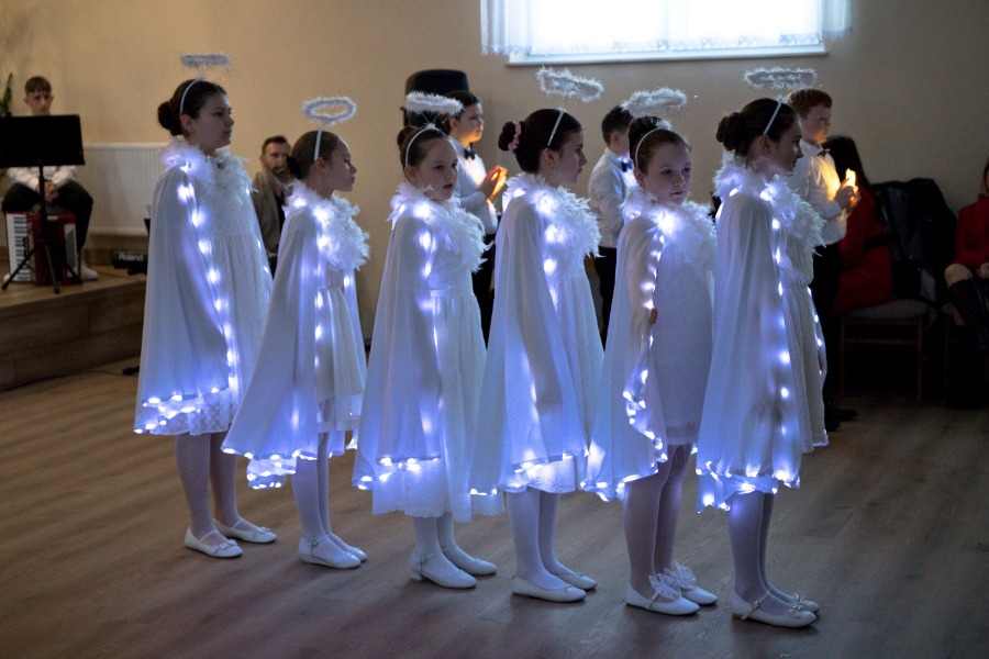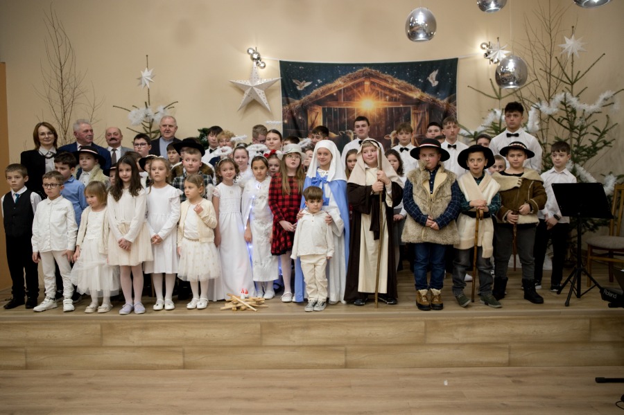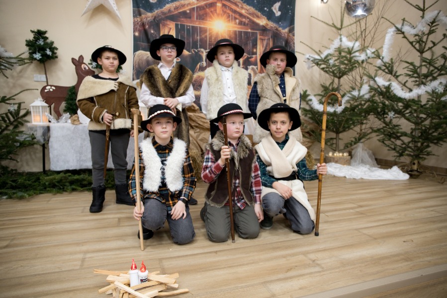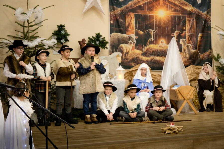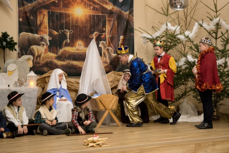 Uczniowie z pełnym zaangażowaniem przedstawili sceny związane z narodzinami Jezusa, wcielając się w role Maryi, św. Józefa, aniołów, pasterzy oraz Trzech Króli. Starannie dobrane stroje i dekoracje nadały przedstawieniu podniosły charakter, budząc zarówno uśmiech, jak i wzruszenie wśród zgromadzonych gości.