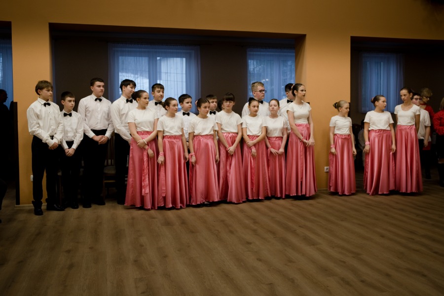 Wieczór pełen emocji uwieńczono przepięknym tańcem – uczniowie zaprezentowali walca, który podkreślił radosny i uroczysty charakter spotkania.