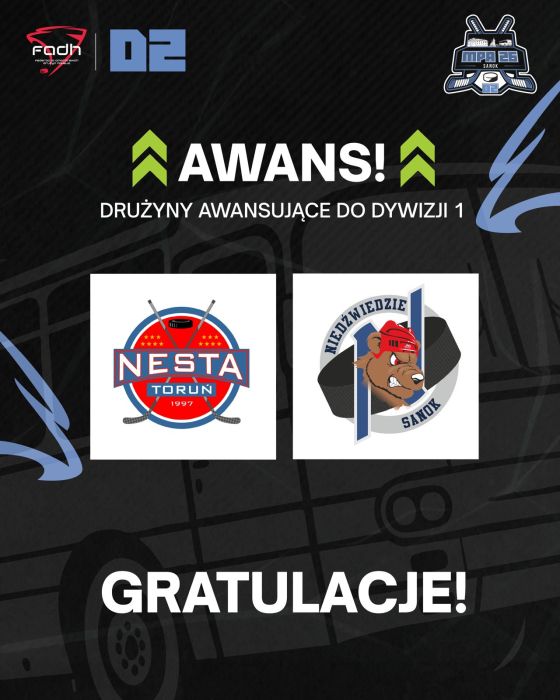 Podczas trzydniowego turnieju II Dywizji Federacji Amatorskich Drużyn Hokeja, rozgrywanych w Sanoku, drużyna Niedźwiedzi Sanok zwyciężyła i tym samym wywalczyła awans do najwyższej klasy rozgrywkowej amatorskiego hokeja w Polsce. Oznacza to, że w przyszłym sezonie nasi hokeiści staną przed szansą walki o mistrzostwo kraju w elitarnej Dywizji Pierwszej. Awans wywalczyła również drużyna Nesty Toruń.