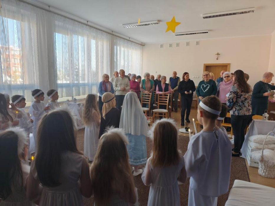 Przedstawienie opowiadające o narodzinach małej Miłości zostało przyjęte z ogromnym entuzjazmem i serdecznością. Mali artyści zachwycili publiczność swoją naturalnością, szczerością oraz ogromnym zaangażowaniem. Emocje płynące prosto z serca, dziecięca radość z występu i autentyczność sprawiły, że na twarzach seniorów pojawiły się uśmiechy, a w oczach wielu osób – łzy wzruszenia. Jak podkreślali uczestnicy spotkania, była to chwila pełna życzliwości, bliskości i prawdziwego ciepła.