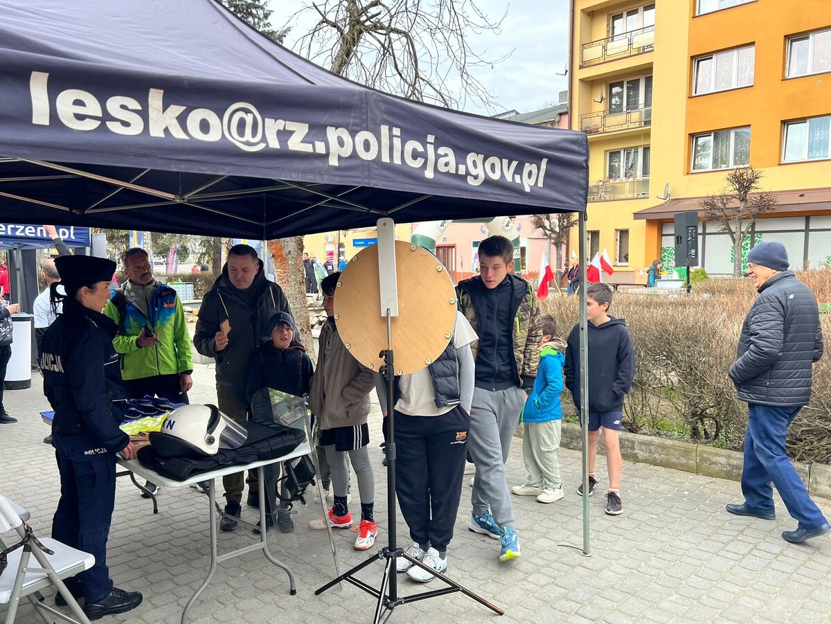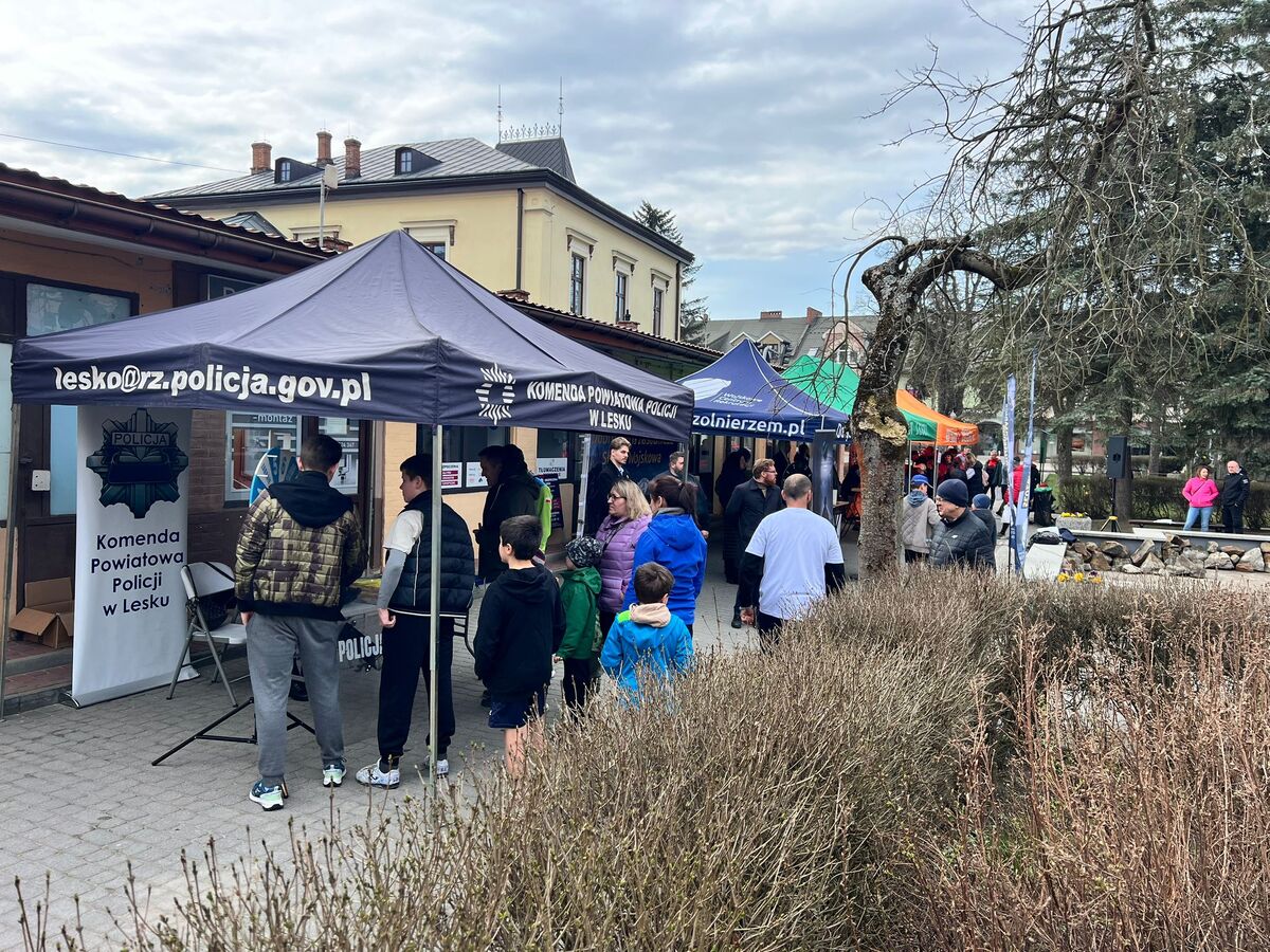 Na miejscu nie zabrakło także policyjnego stoiska promocyjnego. Mundurowi, a szczególnie policjantki z leskiej jednostki, chętnie rozmawiały z uczestnikami, przybliżając specyfikę służby. Zainteresowani mogli dowiedzieć się, jak wygląda proces rekrutacji, jakie są wymagania wobec kandydatów oraz jakie możliwości rozwoju daje praca w Policji.