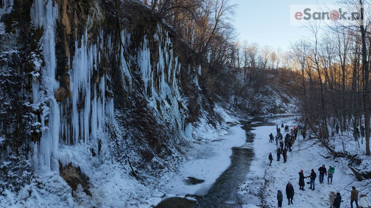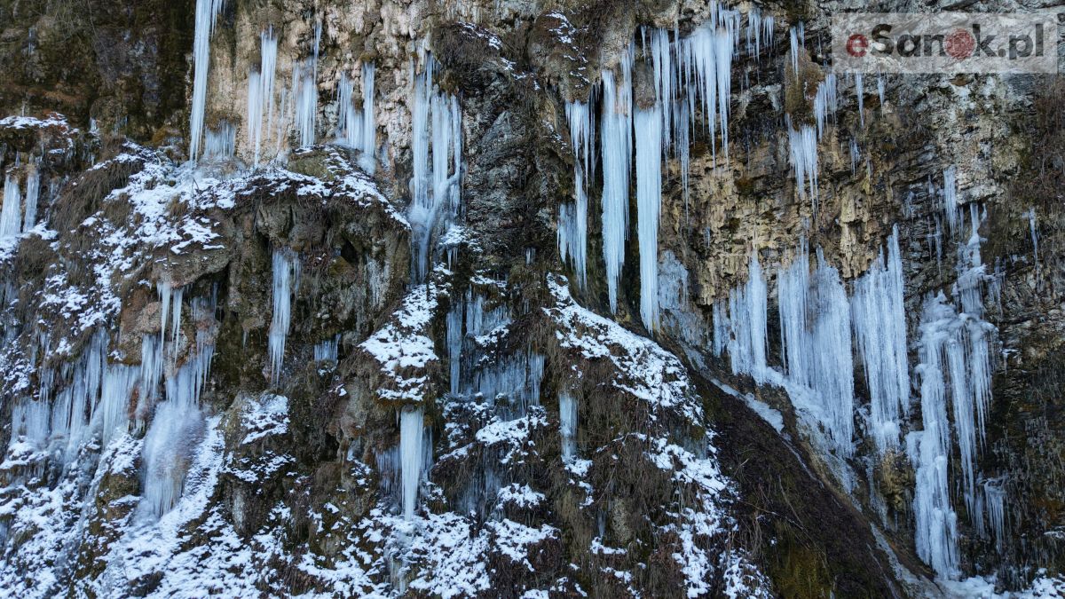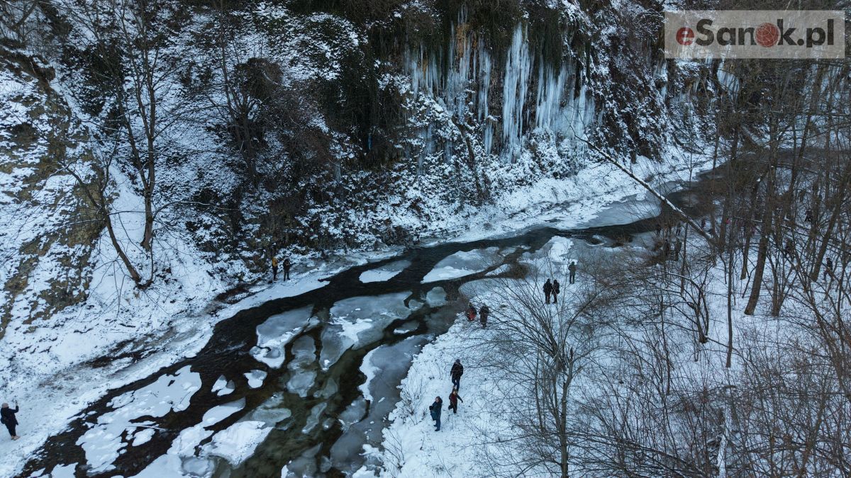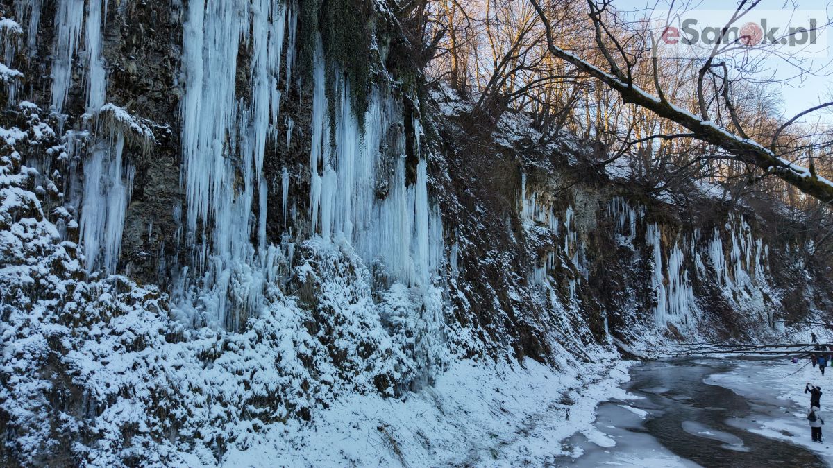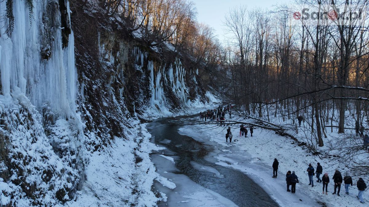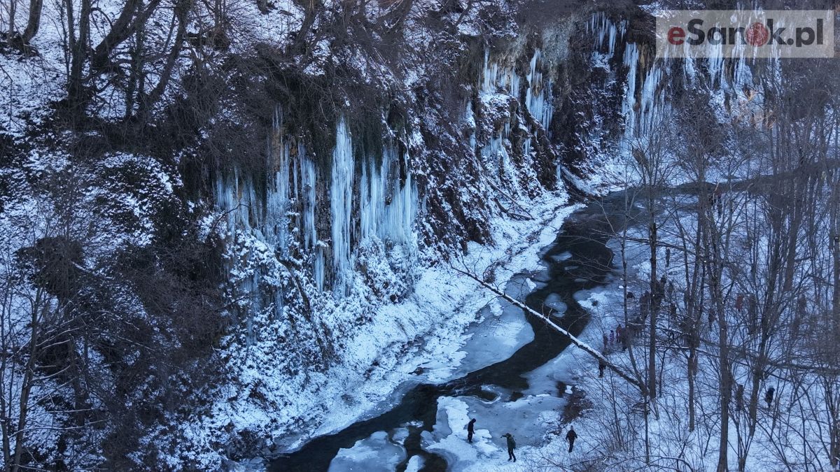 Lodospady w Rudawce Rymanowskiej. Zimowy spektakl natury przyciąga turystów. VIDEO, ZDJĘCIA Z LOTU PTAKA!