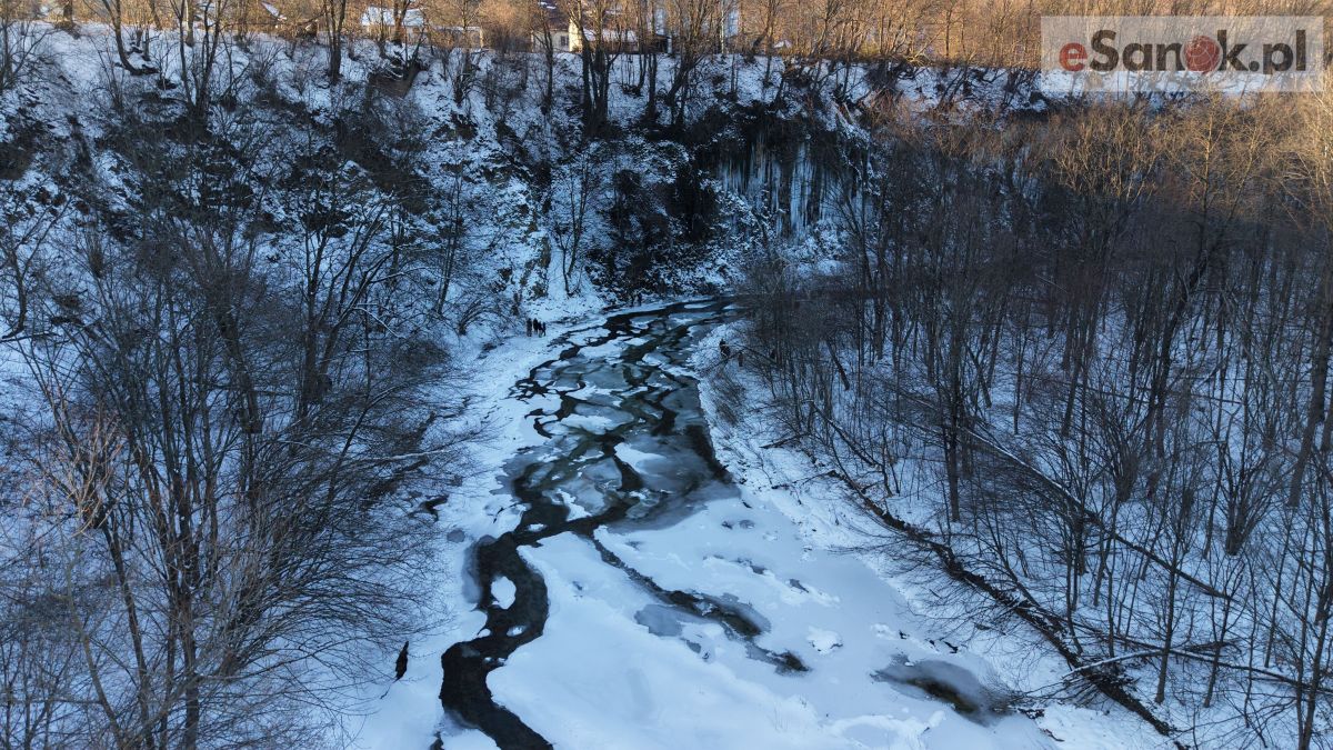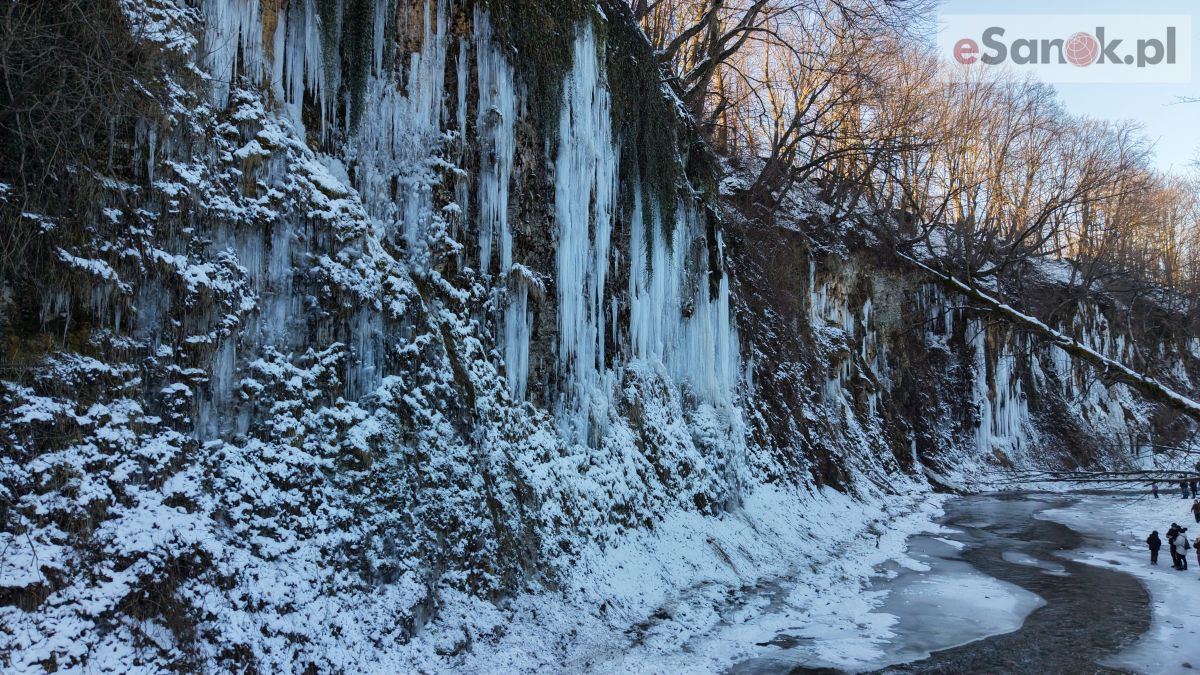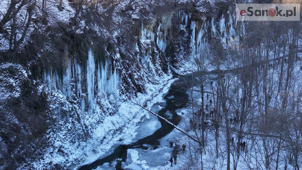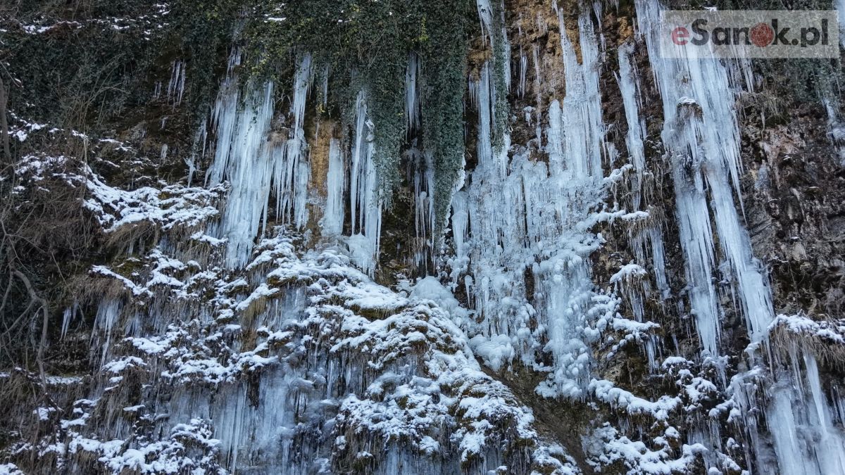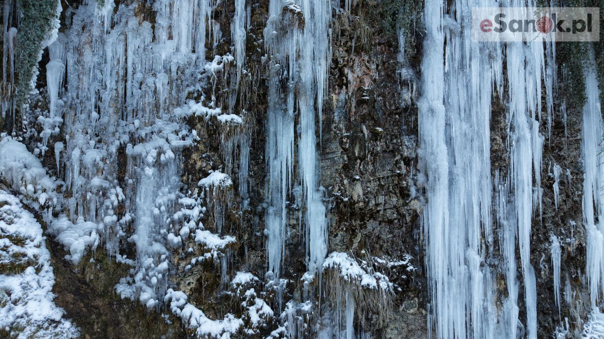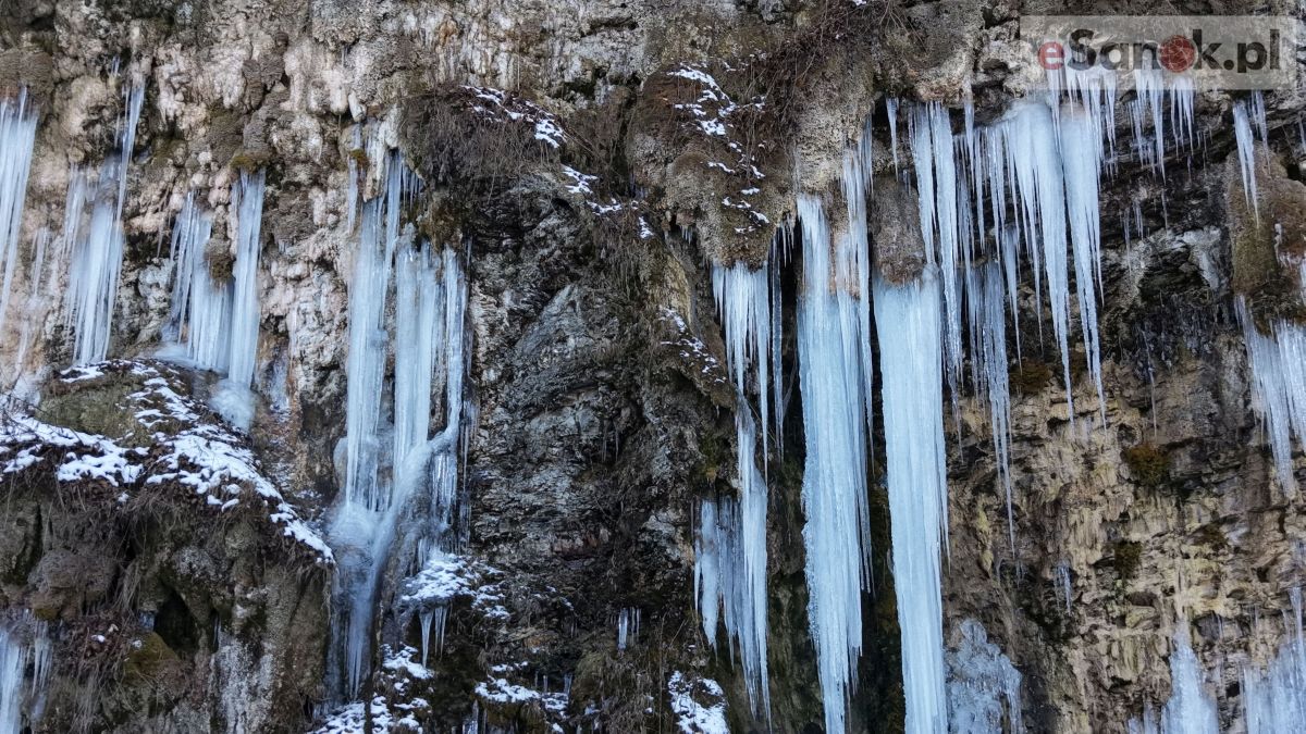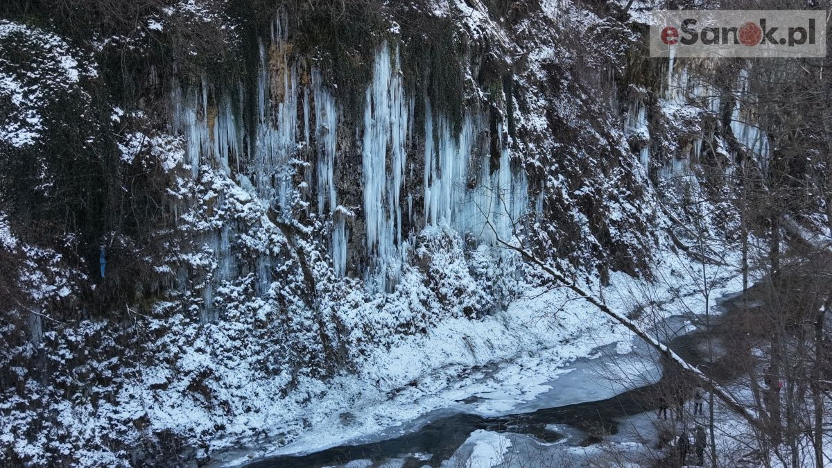 Lodospady w Rudawce Rymanowskiej. Zimowy spektakl natury przyciąga turystów. VIDEO, ZDJĘCIA Z LOTU PTAKA!