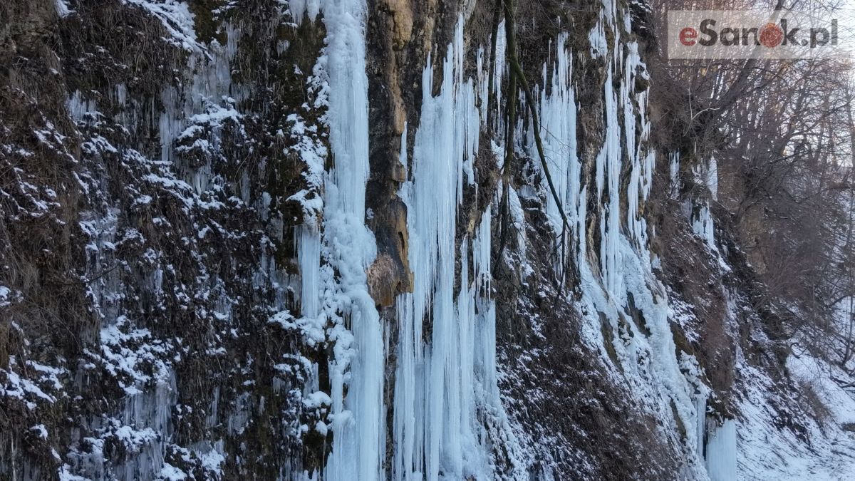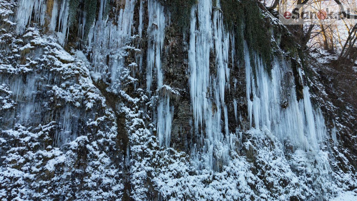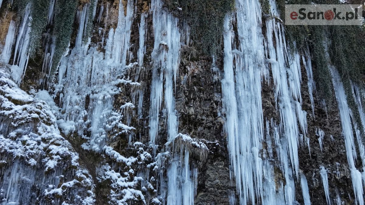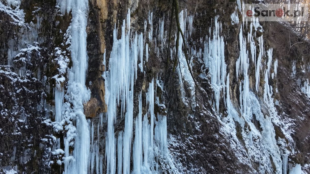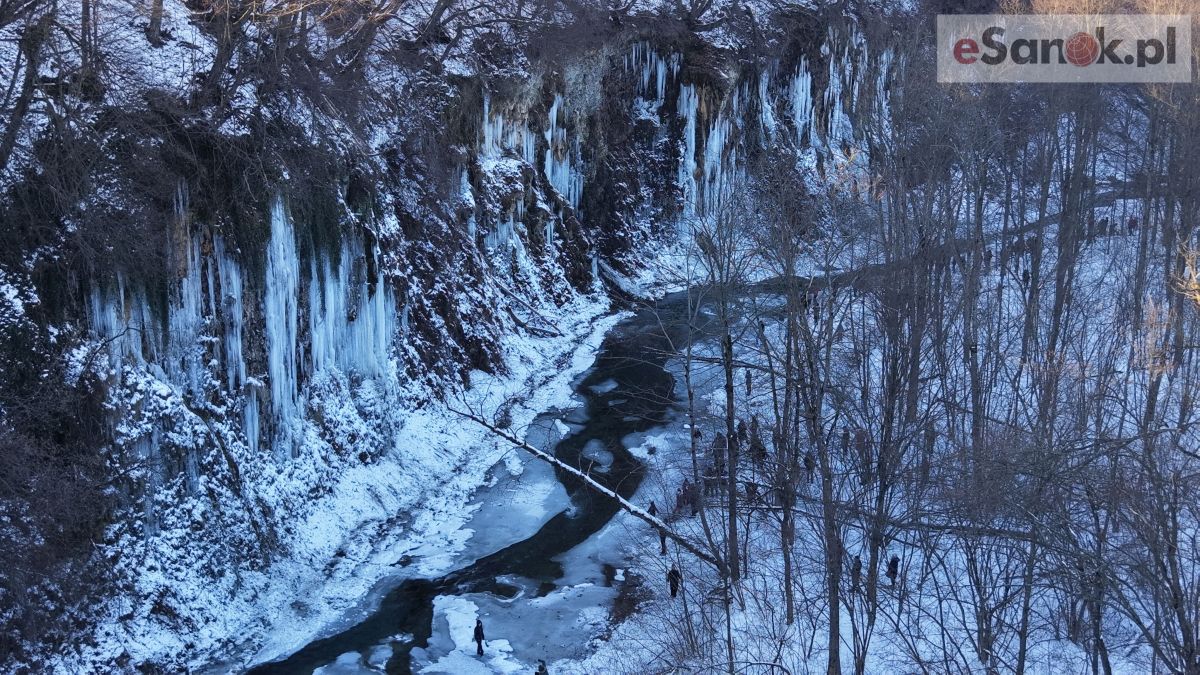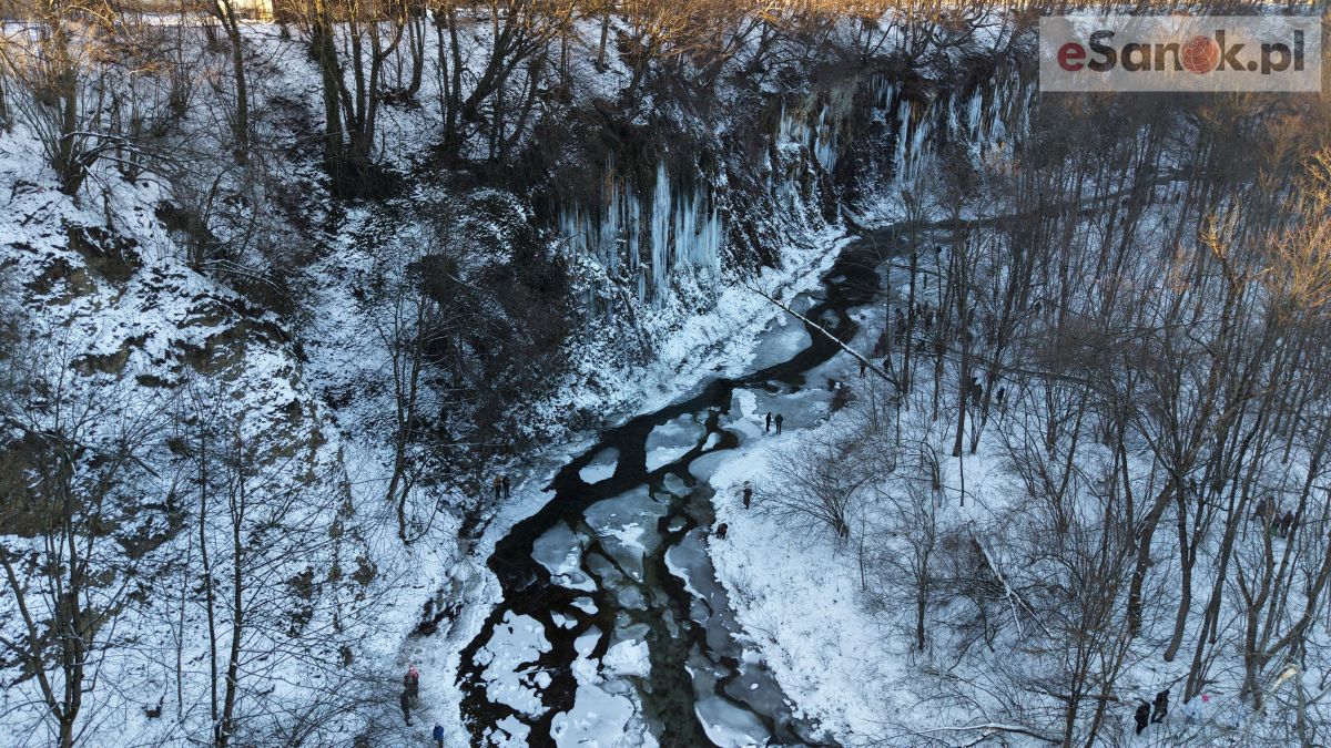 Lodospady w Rudawce Rymanowskiej. Zimowy spektakl natury przyciąga turystów. VIDEO, ZDJĘCIA Z LOTU PTAKA!