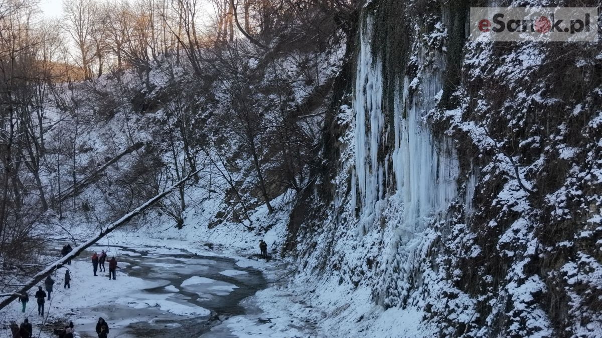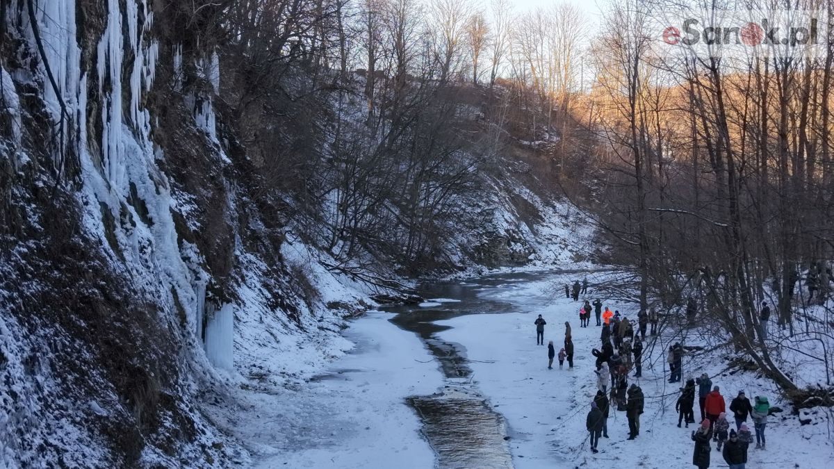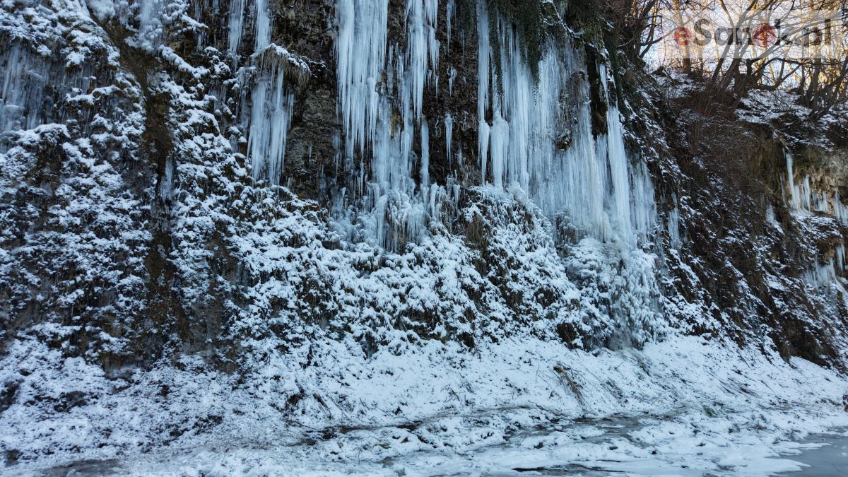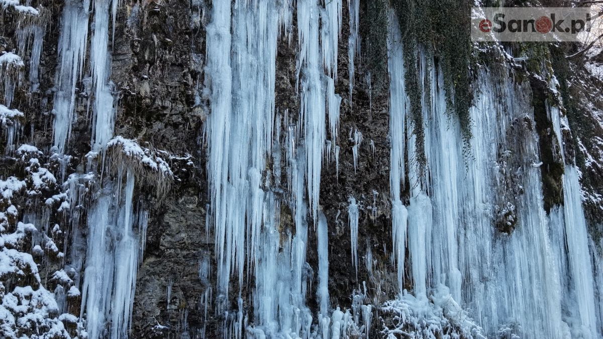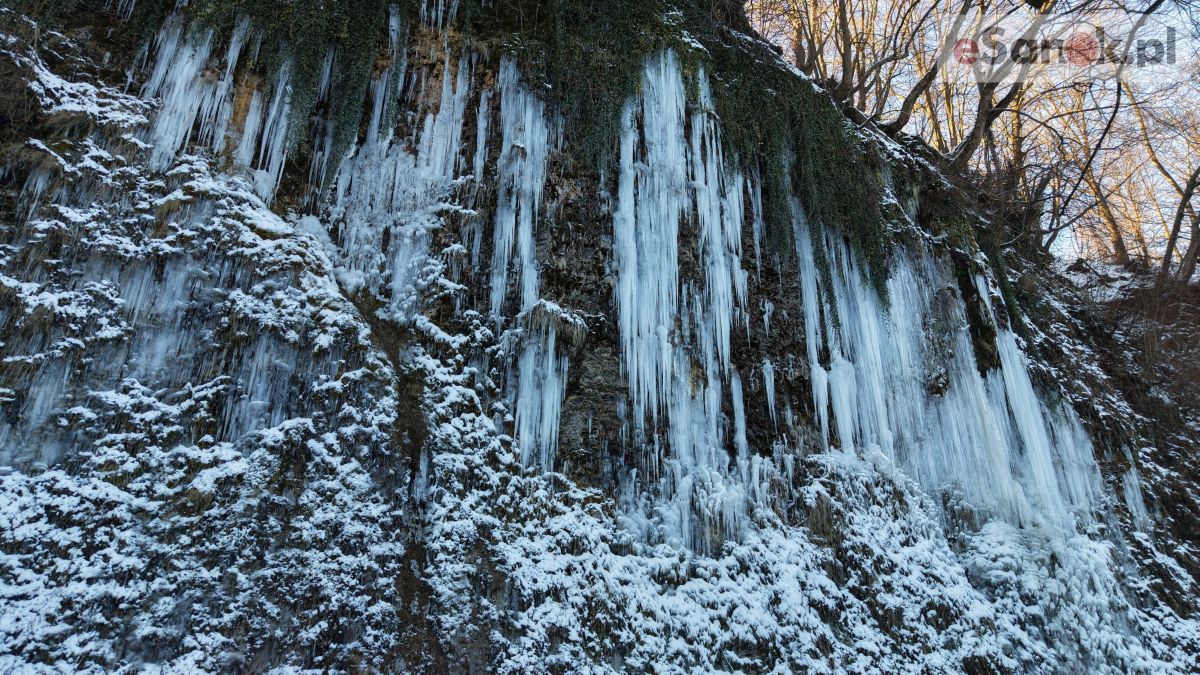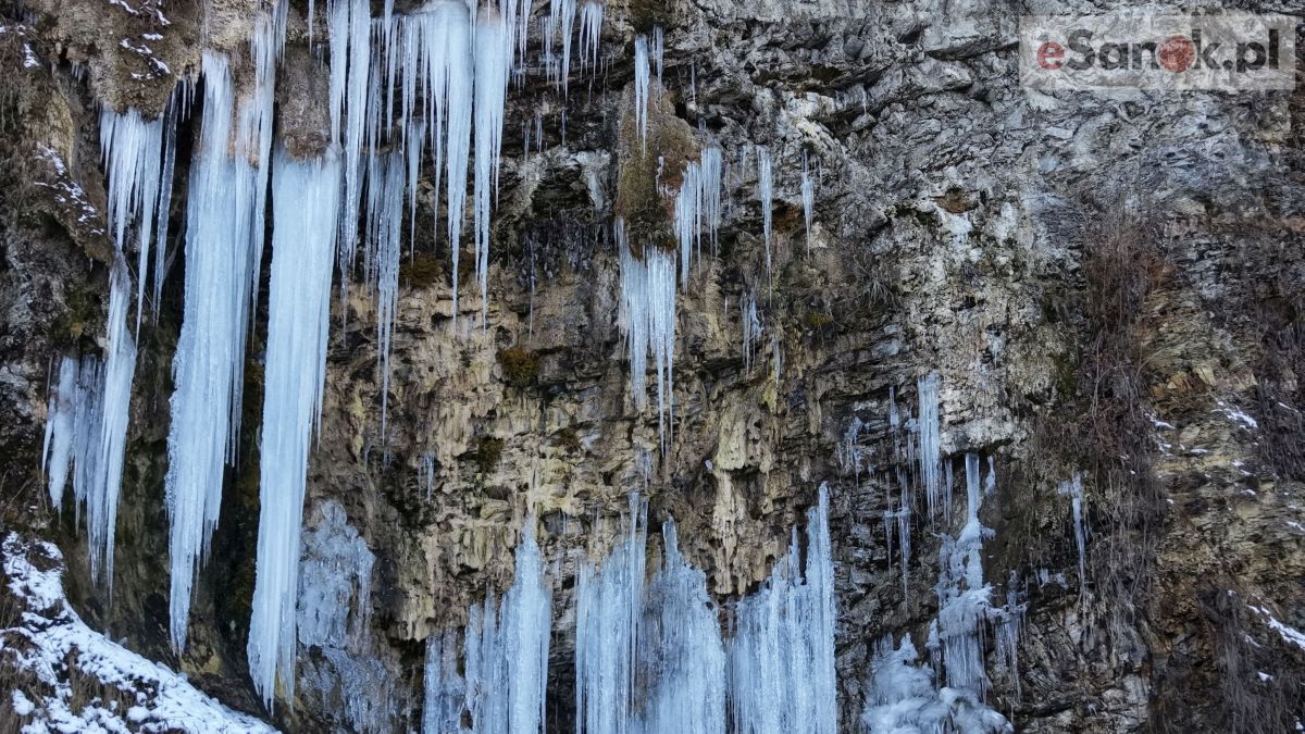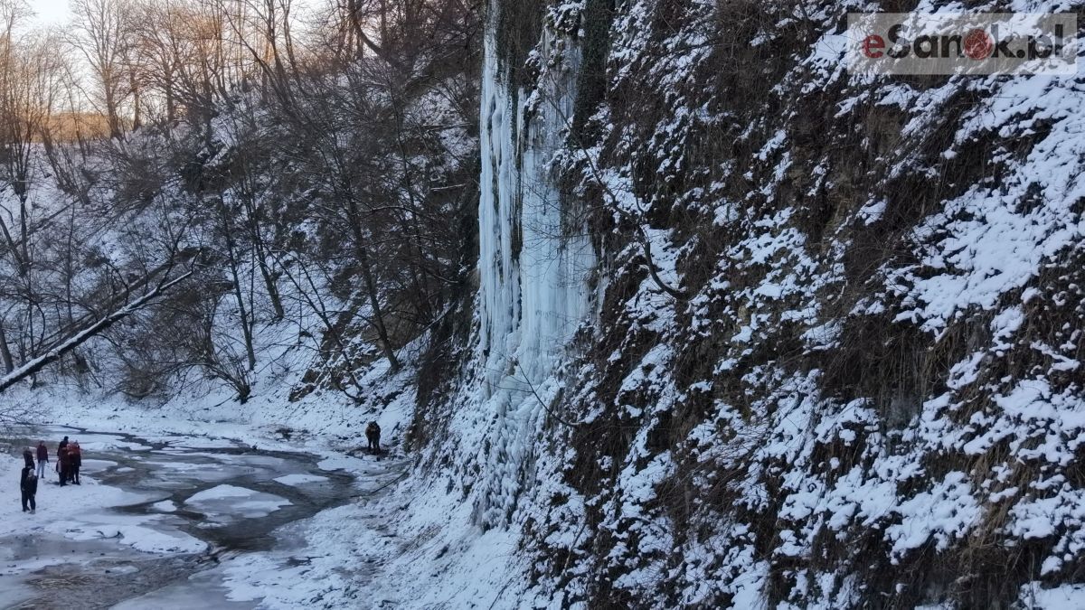 Lodospady w Rudawce Rymanowskiej. Zimowy spektakl natury przyciąga turystów. VIDEO, ZDJĘCIA Z LOTU PTAKA!