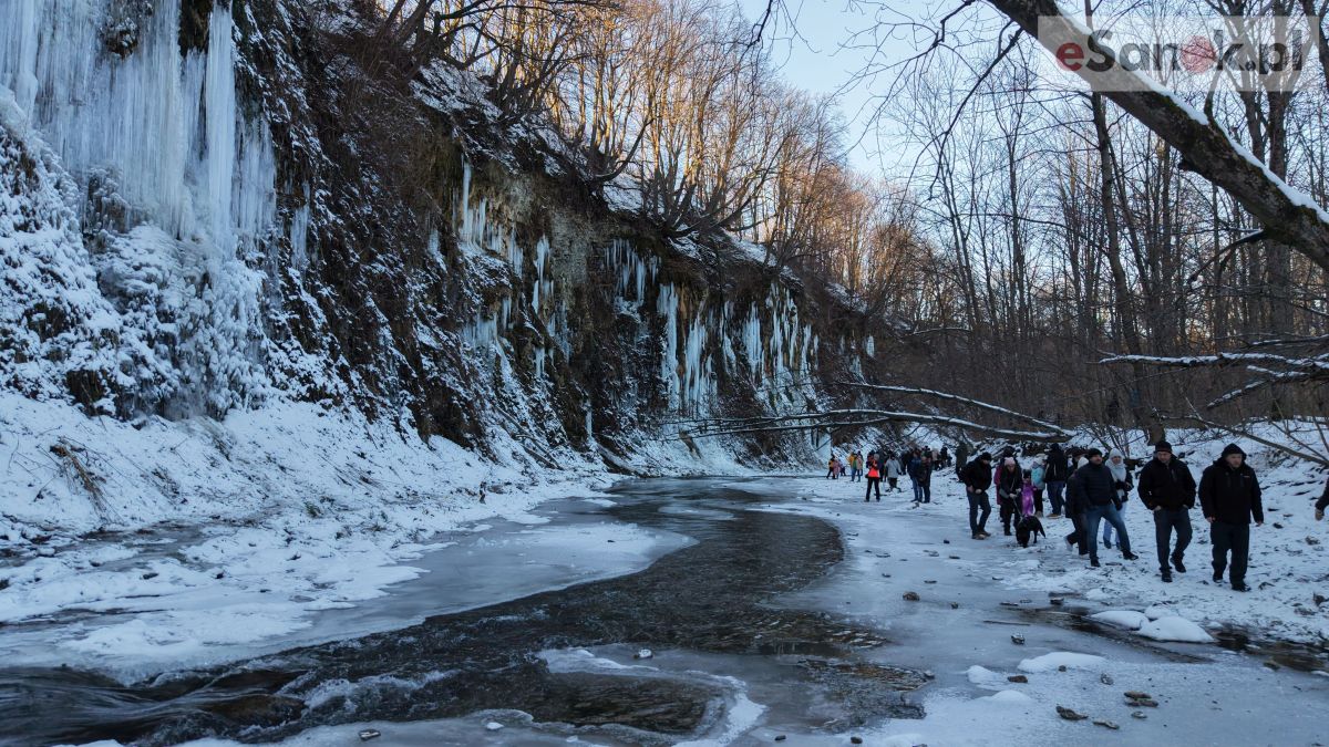 Rudawka Rymanowska, niewielka miejscowość położona w dolinie Wisłoka, zimą zamienia się w prawdziwą galerię lodowych form. Woda spływająca po skalnych progach i stromych zboczach przy niskich temperaturach zamarza, tworząc lodospady o fantazyjnych kształtach. Każdy sezon przynosi inne kompozycje – jedne masywne i monumentalne, inne delikatne niczym kryształowe firany.