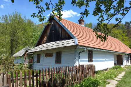 Chałupę z Tyrawy Solnej, gdzie znajdziemy aż trzy tematyczne ekspozycje: „Bogdańscy – rodzina malarzy z Jaślisk”, „W co się oblec…” (wystawa strojów ludowych) oraz pełną sentymentu wystawę zabawek „Czas dzieciństwa”.