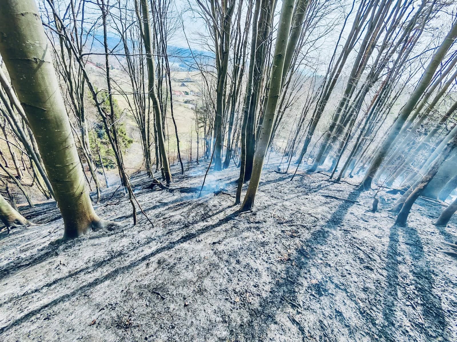 Pożar udało się opanować, jednak straty są znaczące. Ogień strawił ponad hektar powierzchni obejmującej trawy oraz fragment lasu. Po ugaszeniu płomieni strażacy prowadzili jeszcze długotrwałe działania dogaszające, polegające na dokładnym przelaniu pogorzeliska. Było to konieczne, aby wyeliminować ukryte zarzewia ognia i zapobiec ponownemu zapłonowi.