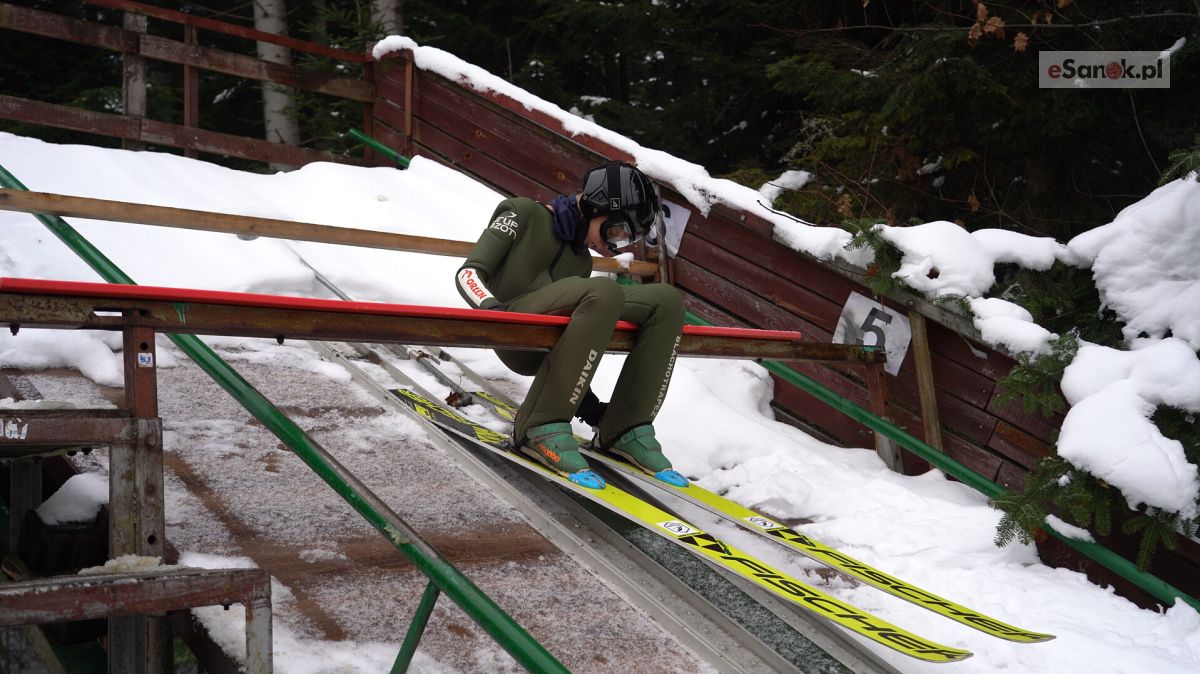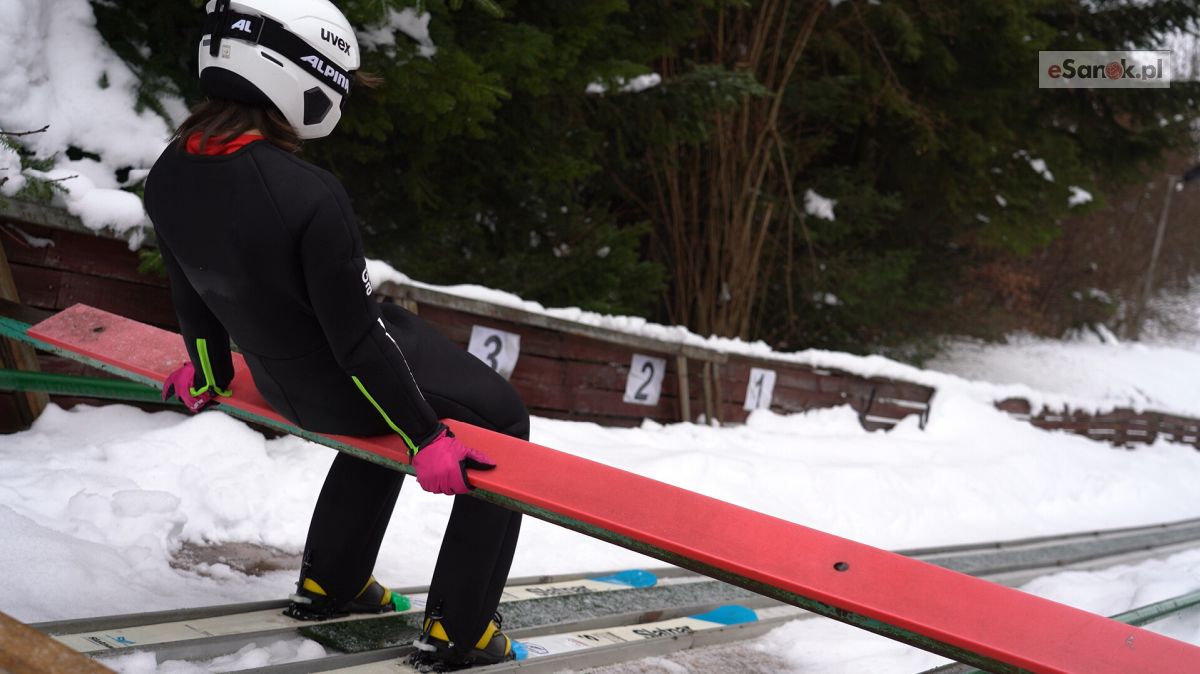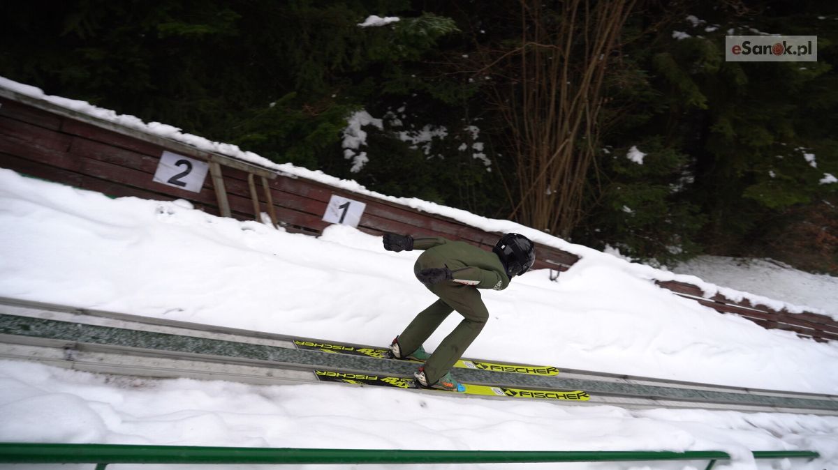 Młodzi mniej doświadczeni skoczkowie trenowali dzisiaj na małych hopkach wybicia z progu oraz zjazd ze skoczni. Bardziej doświadczona trójka odbyła serię skoków na największej 40 metrowej skoczni w Zagórzu.
