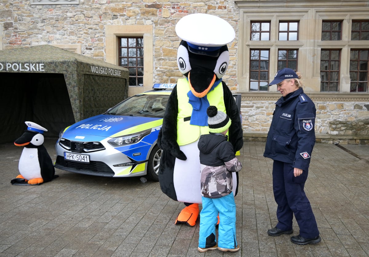 Sanoccy funkcjonariusze przygotowali również specjalne stoisko, na którym prezentowali sprzęt służbowy i umundurowanie. Uczestnicy mogli zobaczyć policyjny radiowóz, policyjne maskotki oraz materiały profilaktyczne, a nawet poczuć się jak prawdziwy policjant, wsiadając do radiowozu. Dużą popularnością cieszyła się policyjna maskotka – pingwin Stefan, z którym niemal każde dziecko chciało zrobić pamiątkowe zdjęcie.