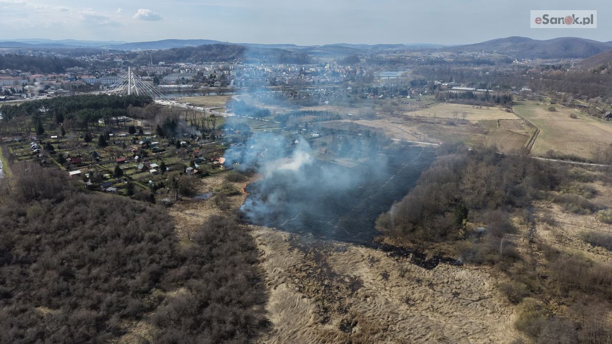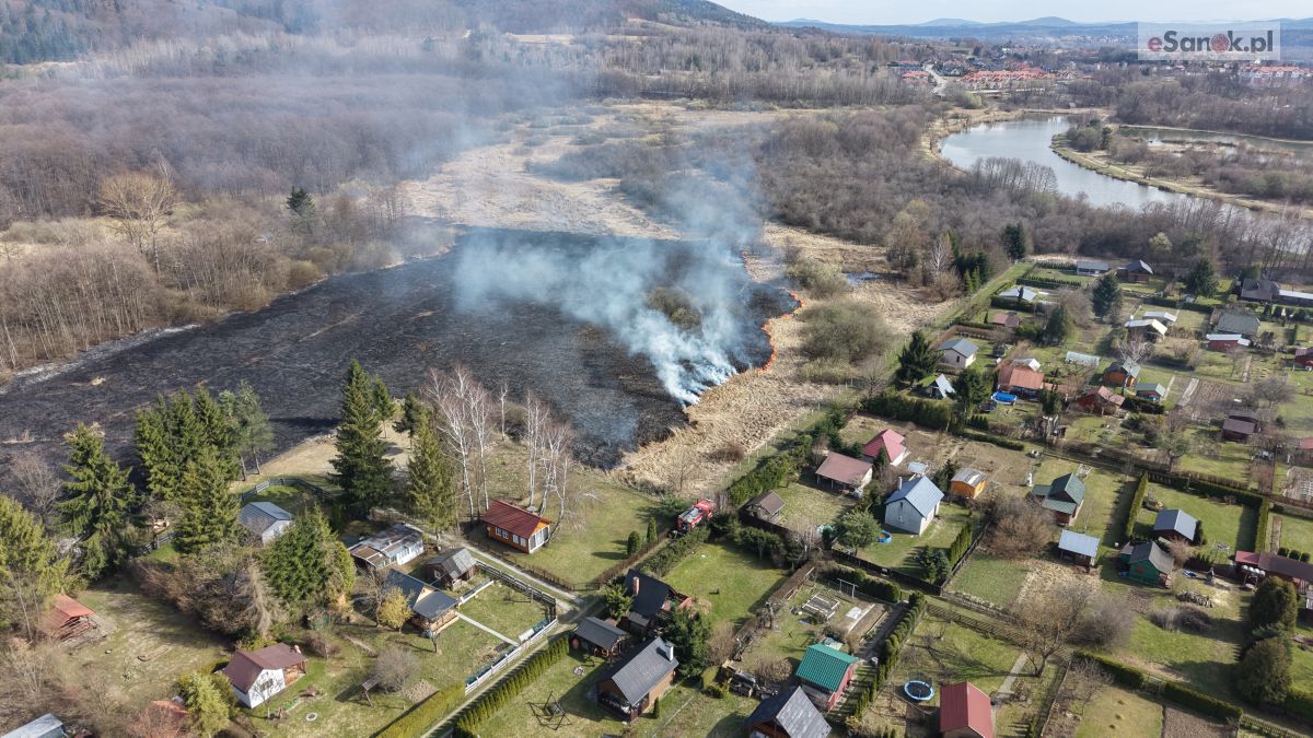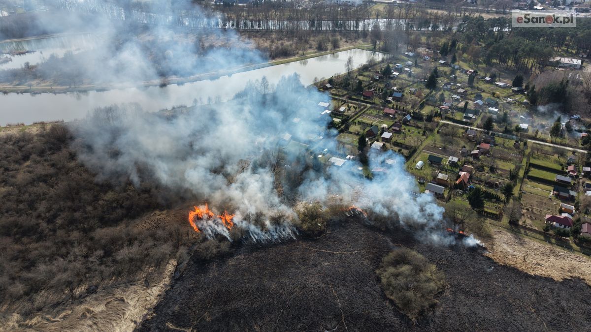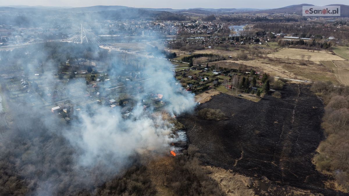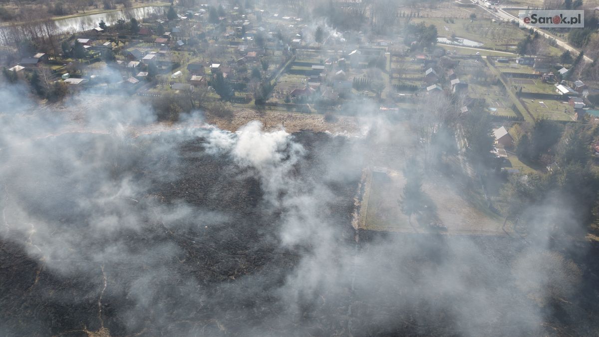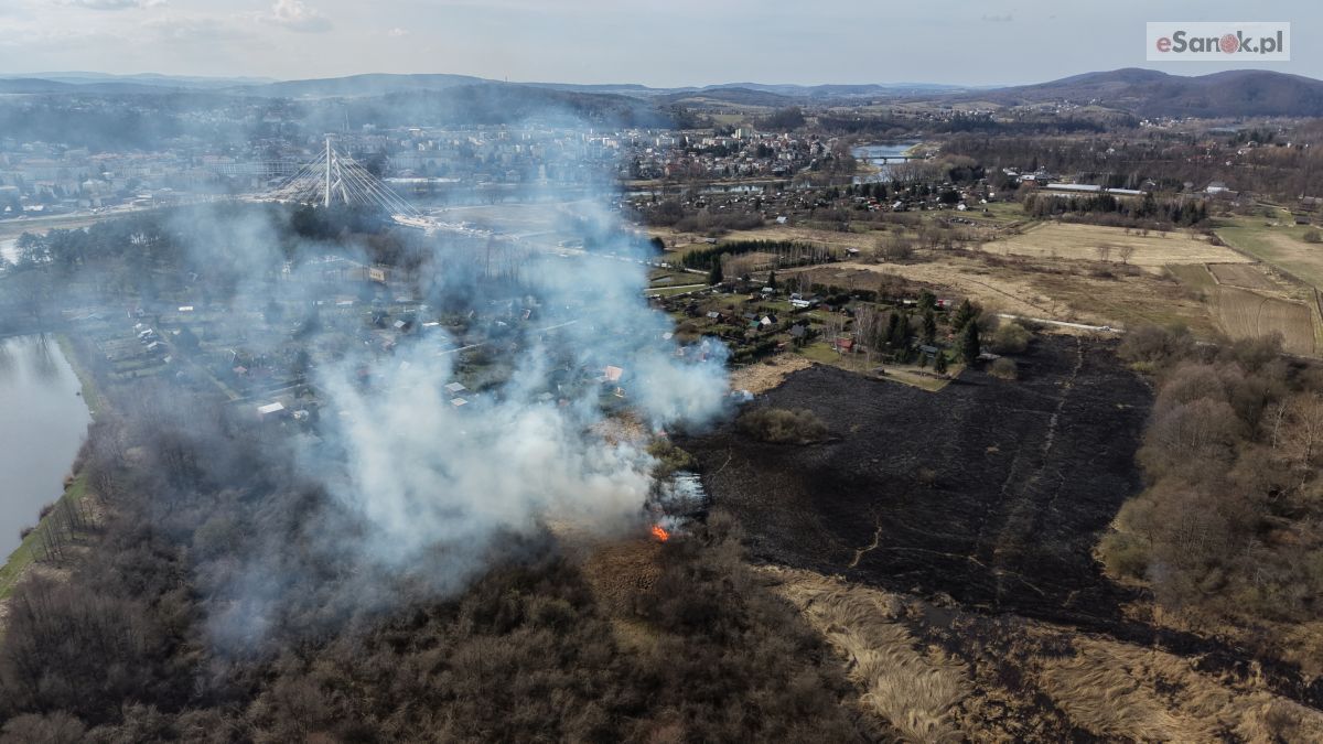 Dzisiaj przed godziną 13:00 dyżurny stanowiska kierowania Państwowej Straży Pożarnej w Sanoku otrzymał zgłoszenie o pożarze traw i nieużytków rolnych w rejonie ulicy Gajowej. Silny wiatr sprawił, że jeden z frontów pożaru błyskawicznie ruszył w stronę pobliskich ogródków działkowych. Według wstępnych szacunków, ogień objął obszar blisko dwóch hektarów.