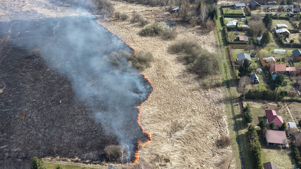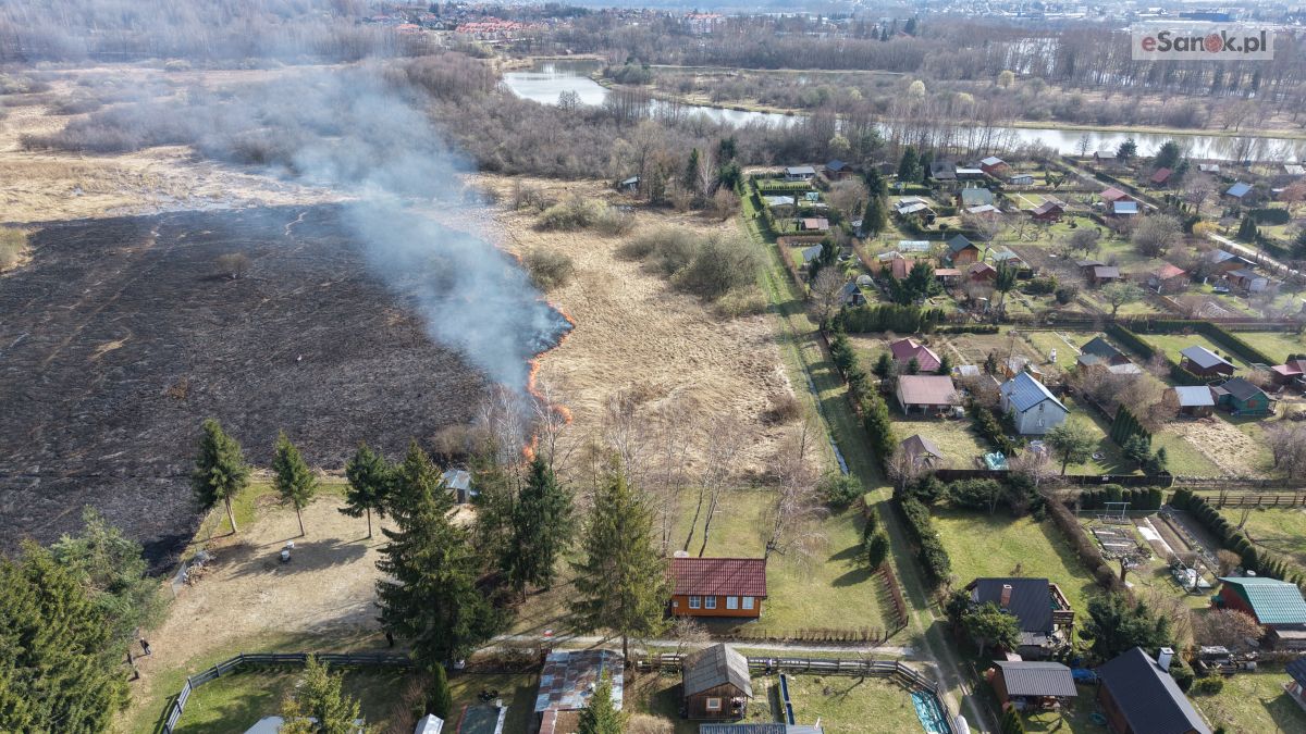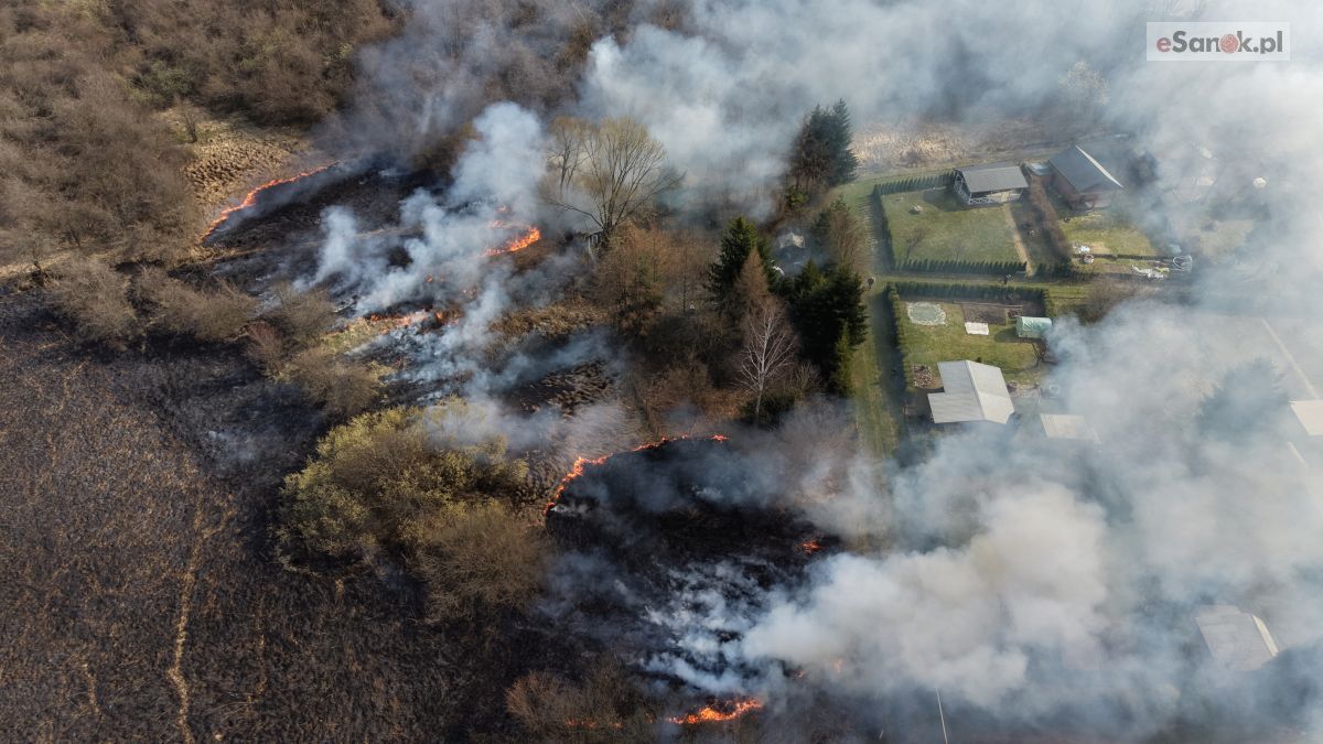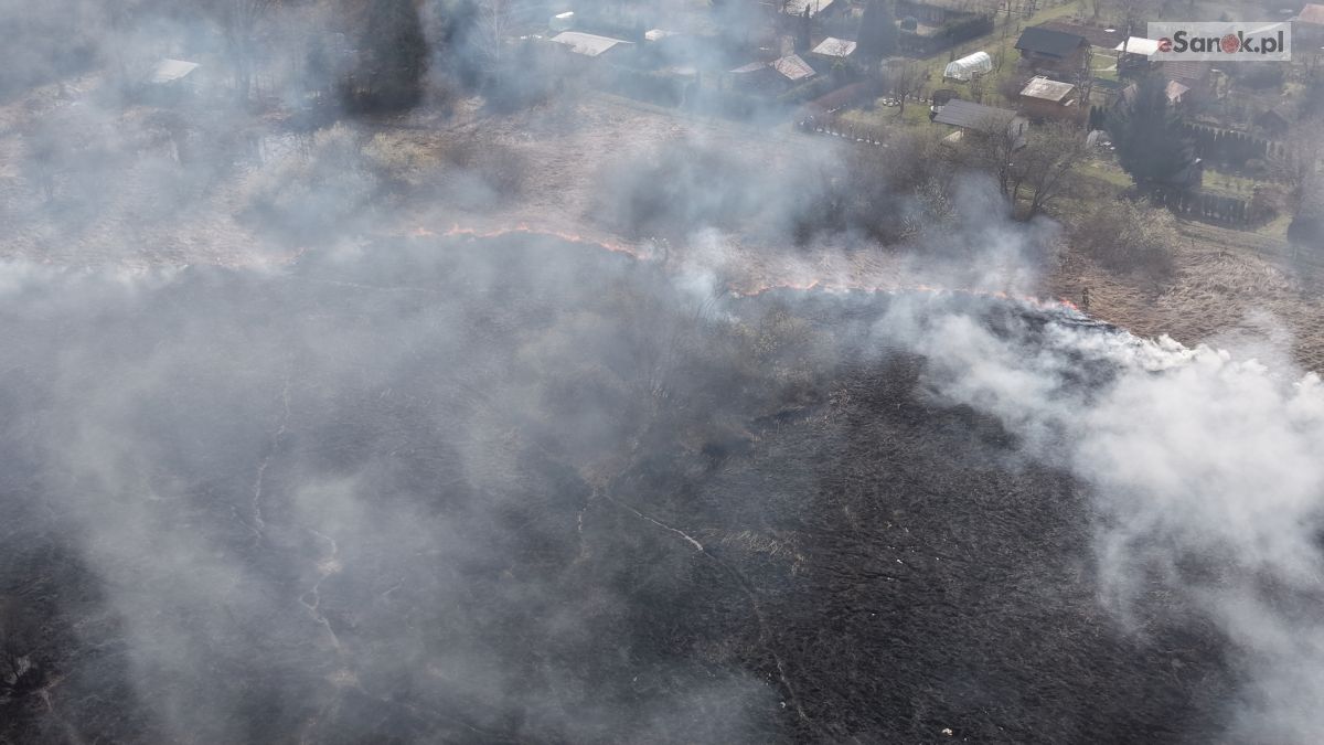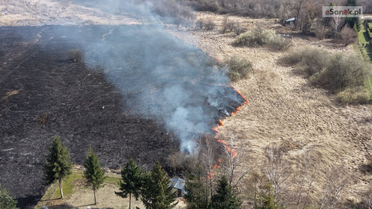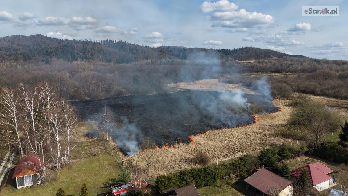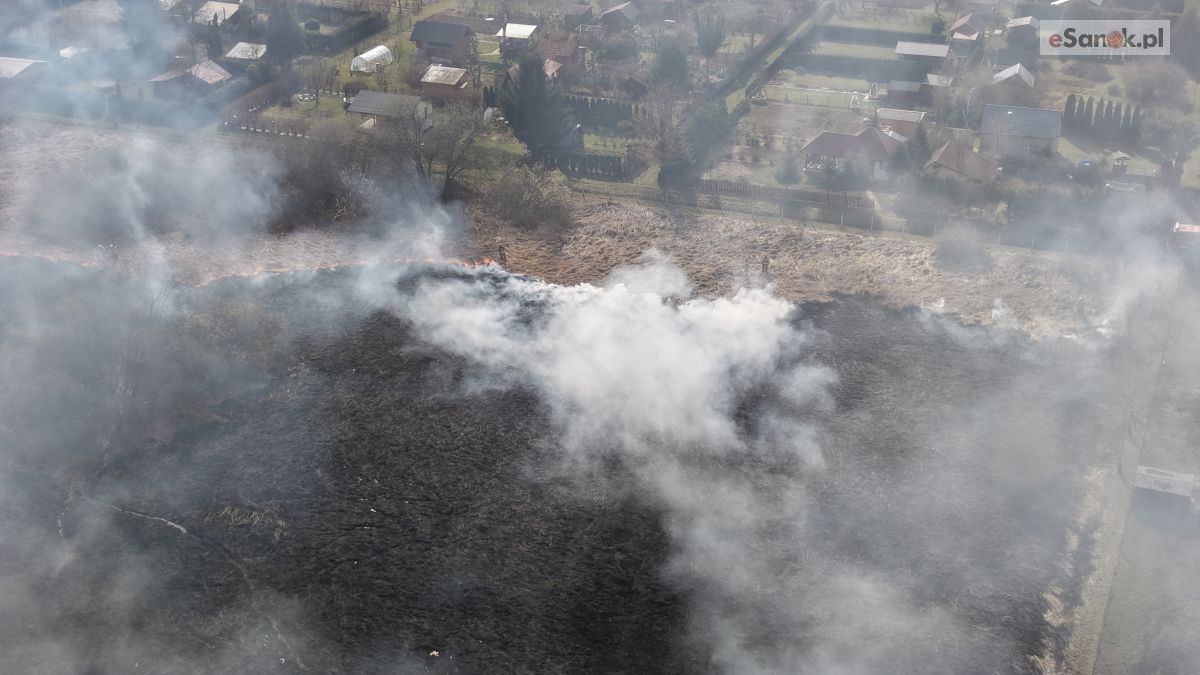 Dzisiaj przed godziną 13:00 dyżurny stanowiska kierowania Państwowej Straży Pożarnej w Sanoku otrzymał zgłoszenie o pożarze traw i nieużytków rolnych w rejonie ulicy Gajowej. Silny wiatr sprawił, że jeden z frontów pożaru błyskawicznie ruszył w stronę pobliskich ogródków działkowych. Według wstępnych szacunków, ogień objął obszar blisko dwóch hektarów.