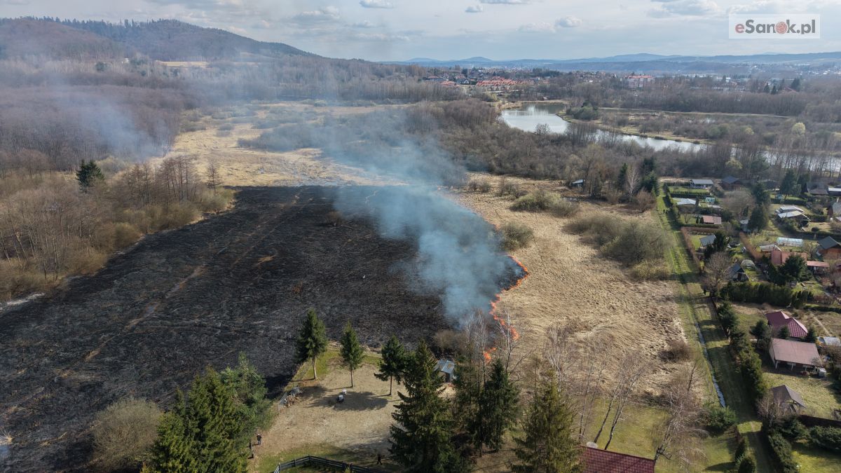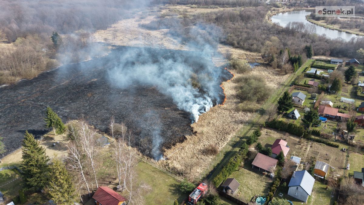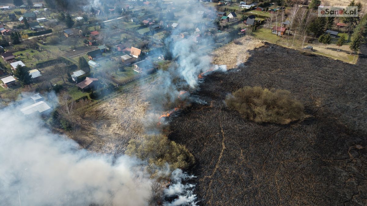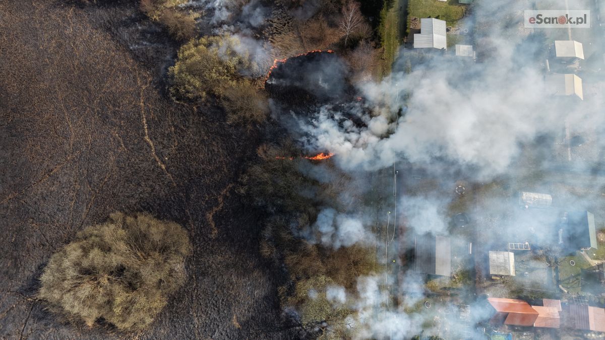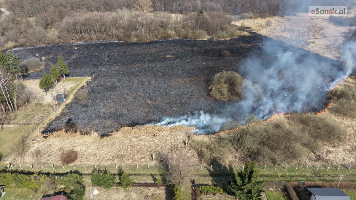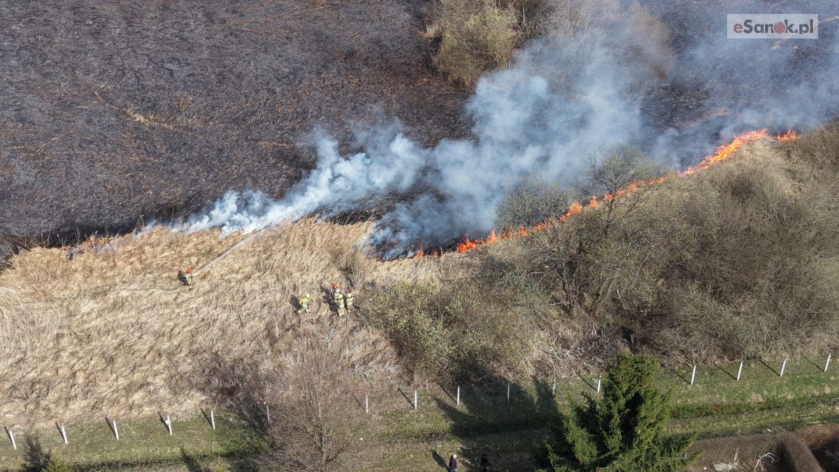 Dzisiaj przed godziną 13:00 dyżurny stanowiska kierowania Państwowej Straży Pożarnej w Sanoku otrzymał zgłoszenie o pożarze traw i nieużytków rolnych w rejonie ulicy Gajowej. Silny wiatr sprawił, że jeden z frontów pożaru błyskawicznie ruszył w stronę pobliskich ogródków działkowych. Według wstępnych szacunków, ogień objął obszar blisko dwóch hektarów.