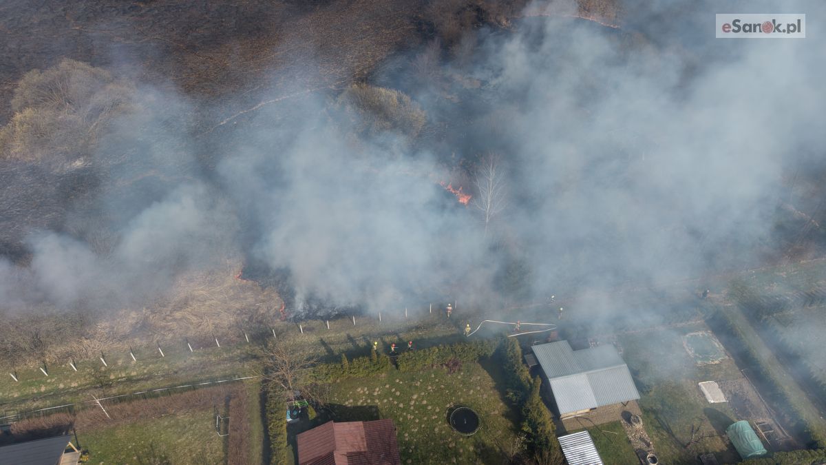 SANOK: Groźny pożar przy ul. Gajowej! Ogień o krok od ogródków działkowych [VIDEO, ZDJĘCIA Z LOTU PTAKA]