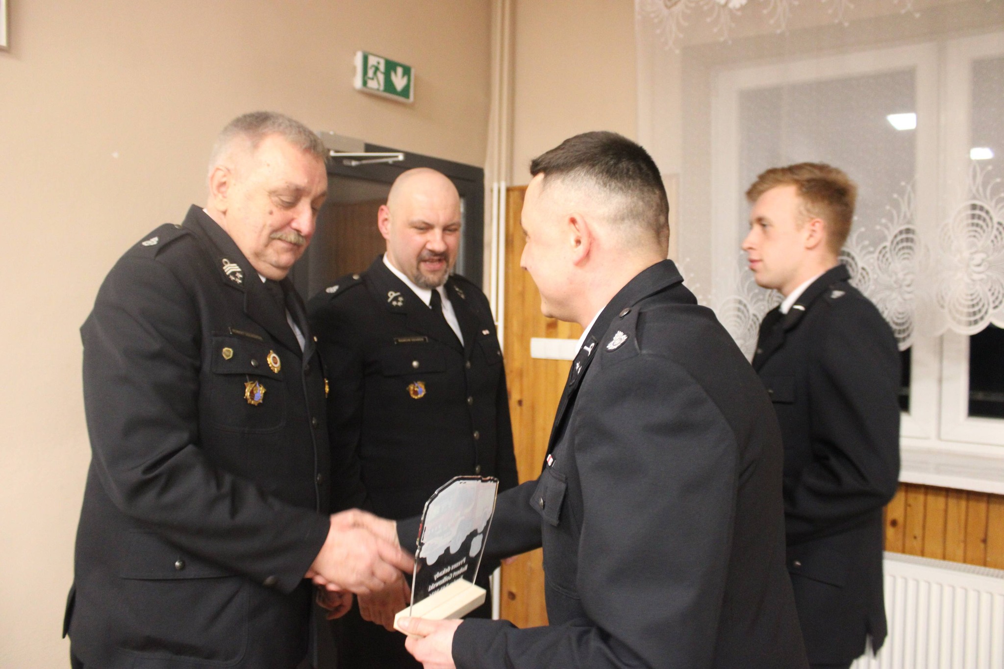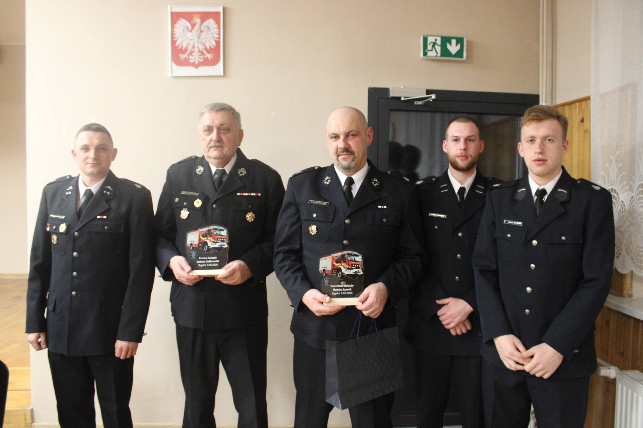 Podczas zebrania nie zabrakło momentów szczególnych. Było ono okazją do uhonorowania najbardziej aktywnych druhów, którzy na wniosek Naczelnika otrzymali pamiątkowe dyplomy oraz statuetki. Z kolei druhowie OSP Zagórz wręczyli symboliczne statuetki Prezesowi i Naczelnikowi, dziękując im za dotychczasowe zaangażowanie i pracę na rzecz jednostki.