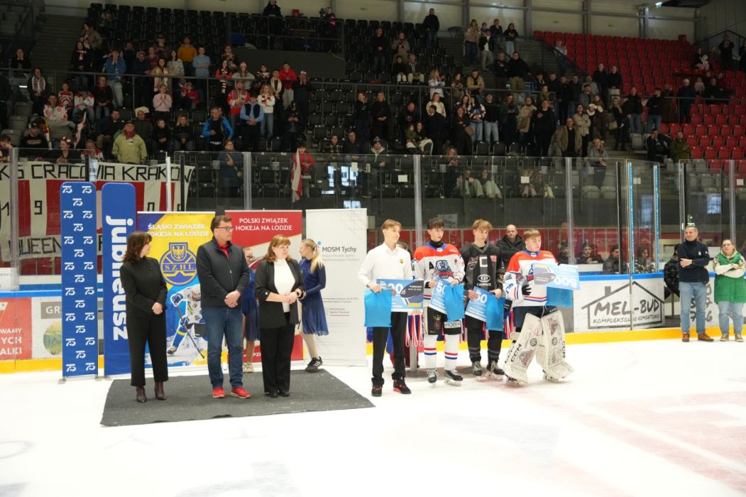 Od stanu 3:6 sanoczanie zdobyli pięć goli z rzędu, w tym dwa trafienia grając w osłabieniu, co kompletnie złamało opór rywali i przypieczętowało tytuł Mistrza Polski U16. Sukces drużynowy dopełniły nagrody indywidualne: najlepszym napastnikiem turnieju został Kacper Suchecki, natomiast tytuł najlepszego bramkarza powędrował do Kacpra Koczery.