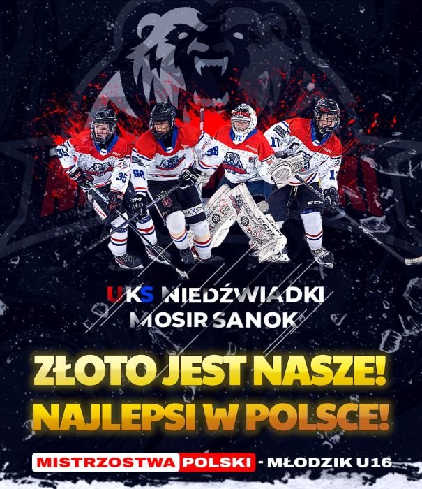 Historyczny sukces młodych hokeistów! UKS Niedźwiadki MOSiR Sanok wywalczyły tytuł Mistrza Polski w kategorii U16 podczas turnieju finałowego rozgrywanego w Tychach. W starciu, które dostarczyło kibicom niewyobrażalnych emocji, sanoczanie odrobili trzy bramki straty w samej końcówce, pokonując Cracovię 8:6!