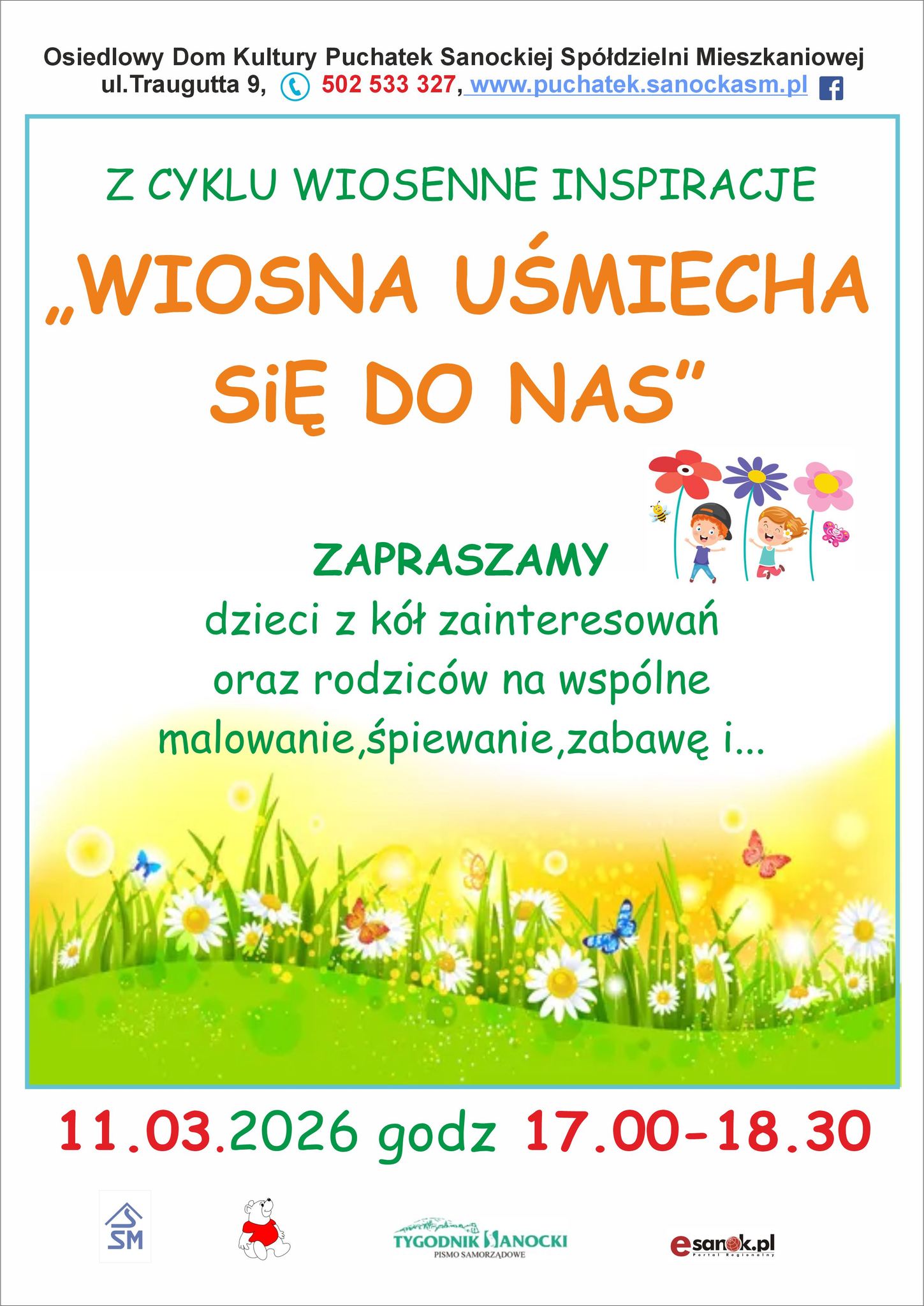 Wiosna puka do drzwi, a w „Puchatku” przy ul. Traugutta zagości ona już 11 marca. Organizatorzy przygotowali wydarzenie pod hasłem „Wiosna uśmiecha się do nas”, które ma na celu nie tylko rozwijanie pasji najmłodszych, ale przede wszystkim wspólną, rodzinną integrację.