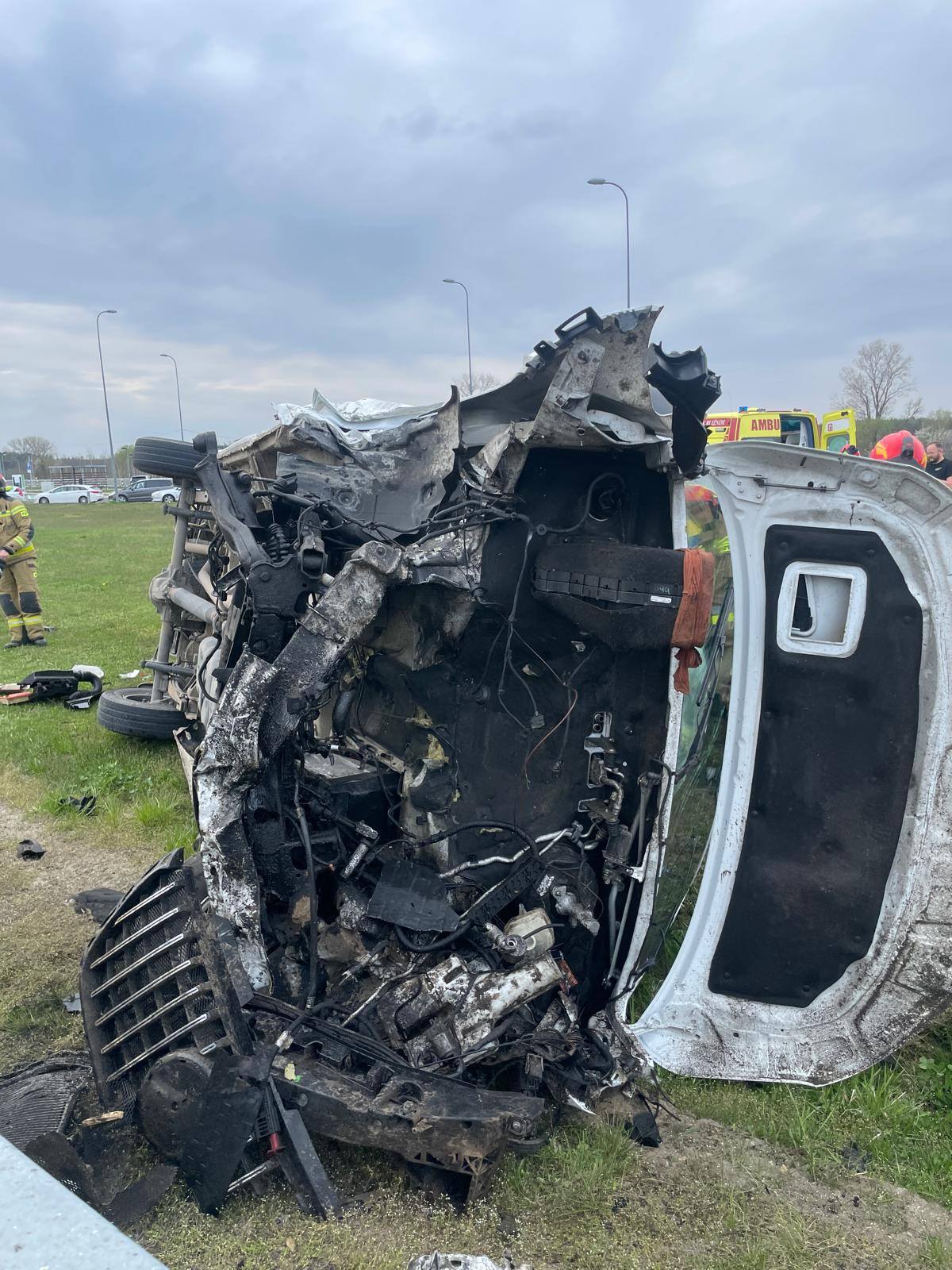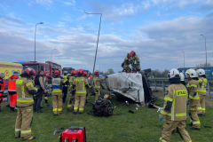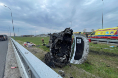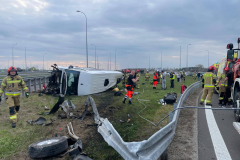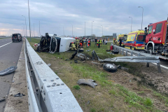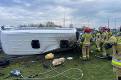 Galeria: PODKARPACIE: Dachowanie busa na A4. Dwie osoby trafiły do szpitala [ZDJĘCIA]