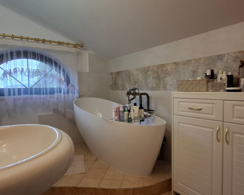 Ogrzewanie gazowe, kolektory słoneczne do podgrzewania wody, stacja uzdatniania wody, klimatyzacja, rolety zewnętrzne.
