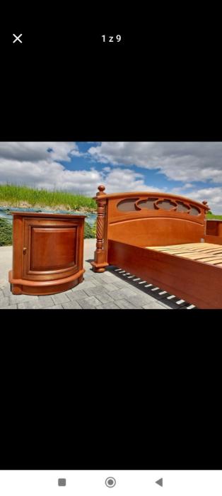 Sprzedam przepiękne drewniane łóżko z kolekcji Opium polskiej renomowanej firmy meblarskiej Mebin. Wymiary materaca 180x200cm, wymiary całej ramy lóżka 197x223 cm. Łóżko sprzedaje z szafkami nocnymi szer.60 cm, całość w kolorze wiśniowym, drzewo olchowe. Łóżko bardzo łatwo się skręca..na klik. Dodatkowo w zagłówku jest podświetlenie ledowe. Komplet mebli pięknie będzie się prezentował w sypialni..naprawdę robi wrażenie. Możliwość zamówienia transportu. Kontakt 530901906.