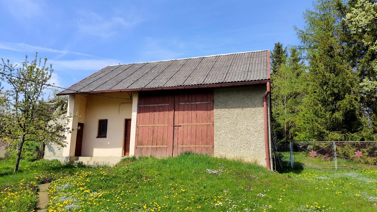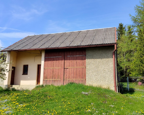 Na działce jest duży budynek gospodarczy, działka ogrodzona, obsadzona