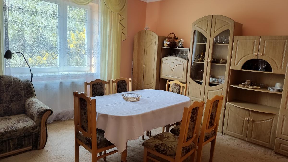 3 pokoje, łazienka, kuchenka, korytarz – powierzchnia ok. 100 m2.