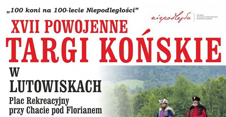 Lutowiska 7 lipca 2018 r. – SPRAWDŹ PROGRAM! Plac rekreacyjny przy Chacie pod Florianem w Lutowiskach SOBOTA – 7 lipca 2018 r. 11:30 Odprawa Ośrodków Jeździeckich przy Stanicy Kresowej Chreptiów w Lutowiskach 12:00 Parada 100 koni na 100 – lecie odzyskania niepodległosci przez Polskę główną ulicą Lutowisk 12:30 Oficjalne otwarcie Targów - prezentacje ośrodków jeździeckich 13:30 Koncert Dziewczęcej Orkiestry Dętej działąjącej przy VI Liceum Ogólnokształcącym w Rzeszowie oraz Wojewódzkim Domu Kultury w Rzeszowie 14:00 Naturalne metody układania koni – Ryszard „Prezes” Krzeszewski - Ośrodek Górskiej Turystyki Jeździeckiej „U Prezesa” w Chmielu 14:30 „Pokaz jazdy kozackiej” – Grupa Jeździecka „Tabuńczyk“ z Tarnawy Niżnej 14:45 Pokaz łucznictwa konnego – Ośrodek Hipoterapii i Rekreacji Konnej „Dolina Koni“ w Tarnawie Niżnej – Fundacja „Hucuły Dzieciom“ 15:00 Koncert zespołu country „Ola Nowak Band” 16:00 Pokaz koni arabskich – Ośrodek Górskiej Turystyki Jeździeckiej „Trohaniec“ w Lutowiskach 16:30 Pokaz jazdy synchronicznej – BdPN 17:00 Koncert Zespołu Ludowego 19:00 Zabawa taneczna przy zespole regionalnym „Medium” Atrakcje: - wystawa rękodziała i rzemiosła artystycznego, - pokazy w przenośnym planetarium, - targi produktów lokalnych, - degustacje potraw regionalnych, - pokazy rękodzielnicze,